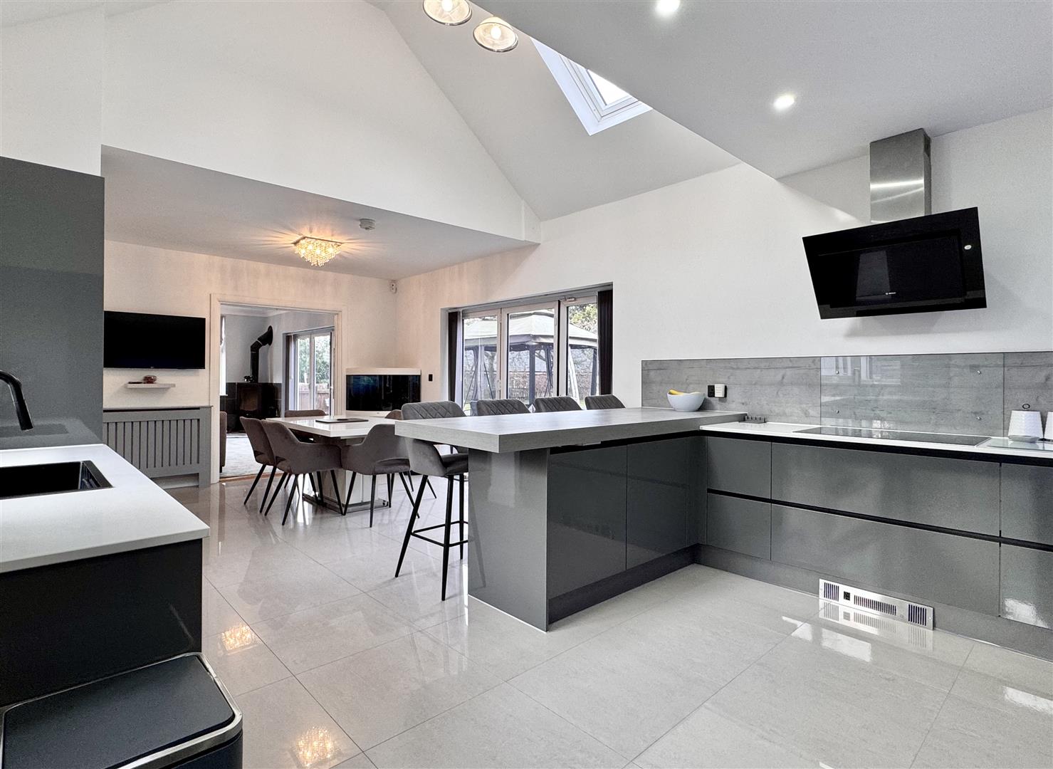 - 24' VAULTED Kitchen/Dining/Family Room & 17' Lounge With Log Burner