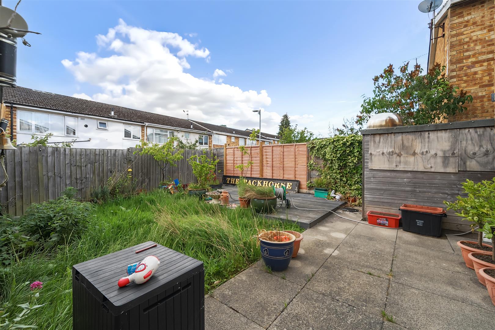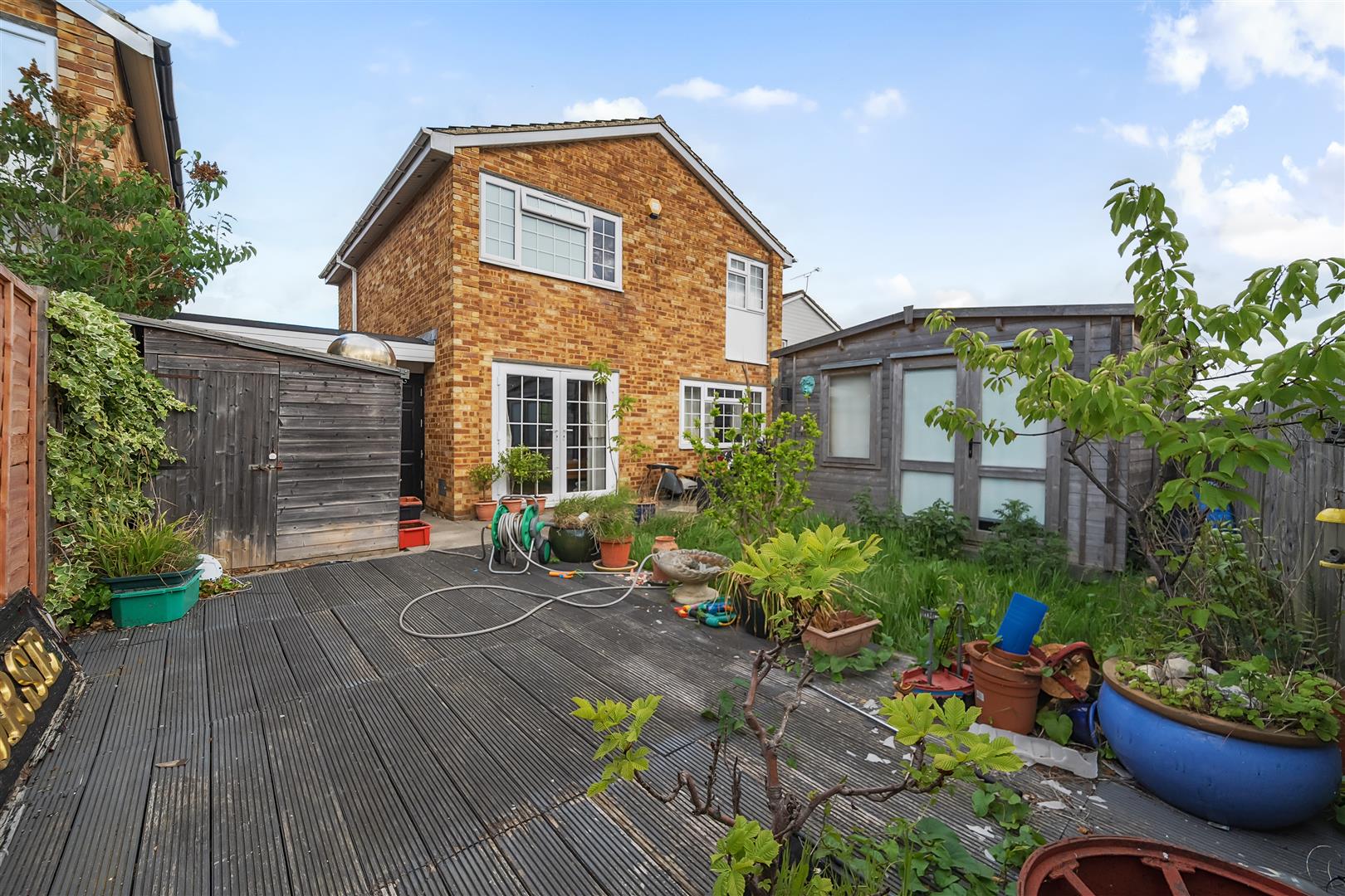 An easy to maintain West facing garden that has a paved patio area that is perfect for those summer BBQ's, a raised decked area with space for a hot tub, garden shed, door to the home office and door to the garage.