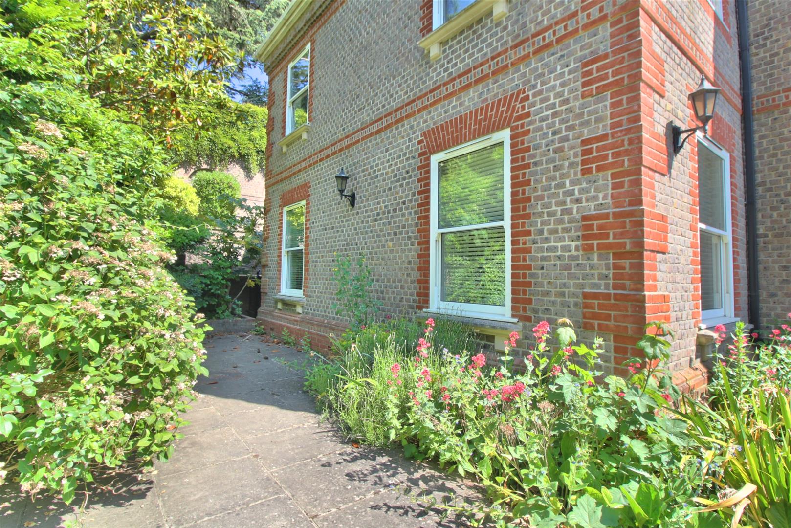 A private paved patio garden that wraps around the apartment that is perfect for summer entertaining, shrub boards and views back over the Reading skyline.