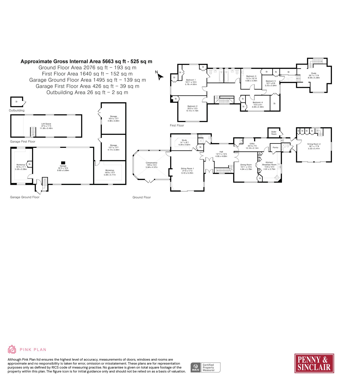 A second sitting room at the far end of the house enjoys direct garden access via patio doors and benefits from a secondary staircase leading to a first-floor study. There are two separate cloakrooms, a sizeable utility room, and a fully fitted ground-floor study with built-in storage.