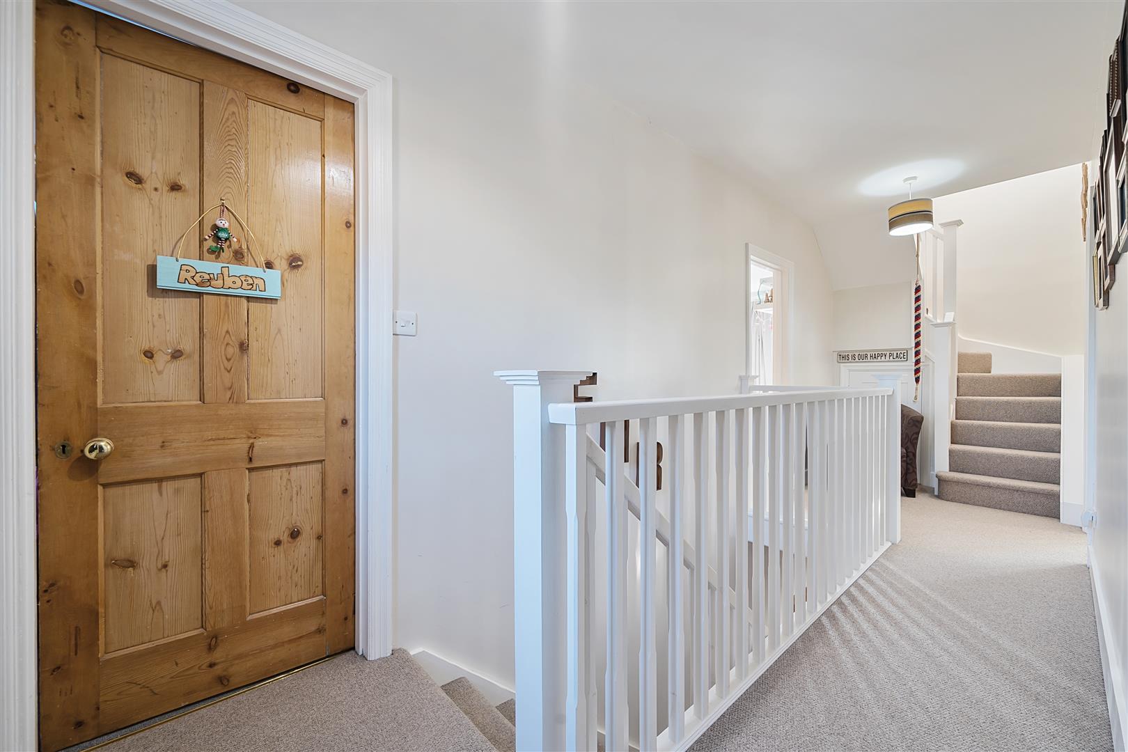 A wide and sizeable landing with window overlooking the front of the property, storage cupboard, stairs to the ground and top floor and doors to bedrooms and bathroom.