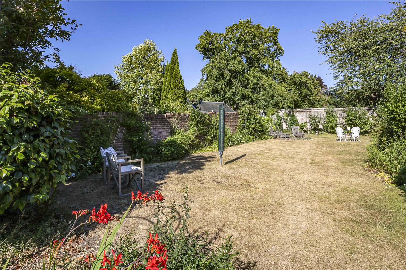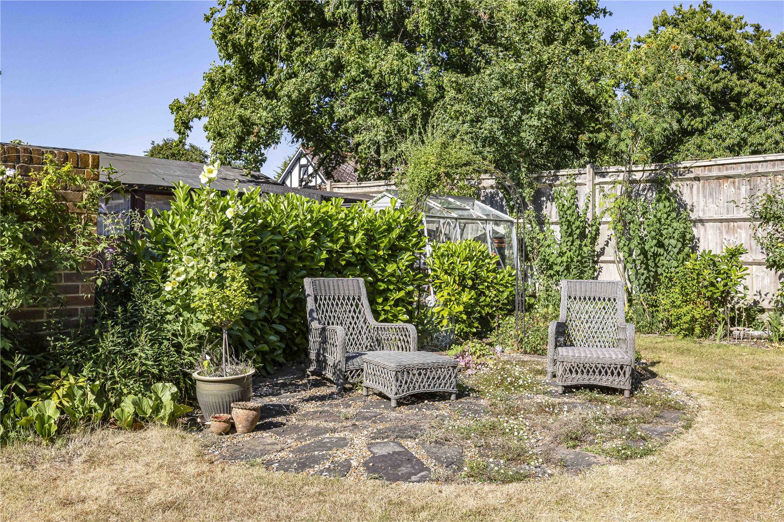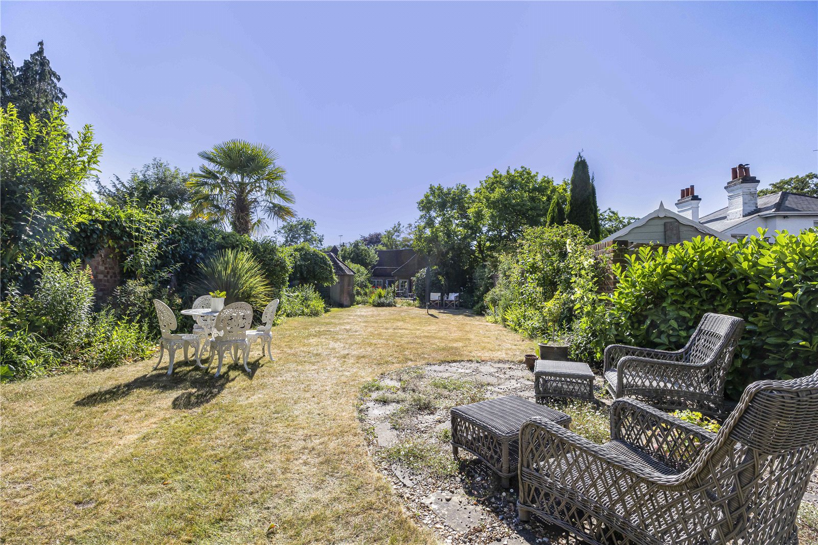 - Generous secret garden – lawn, mature planting and substantial outbuilding/studio potential.