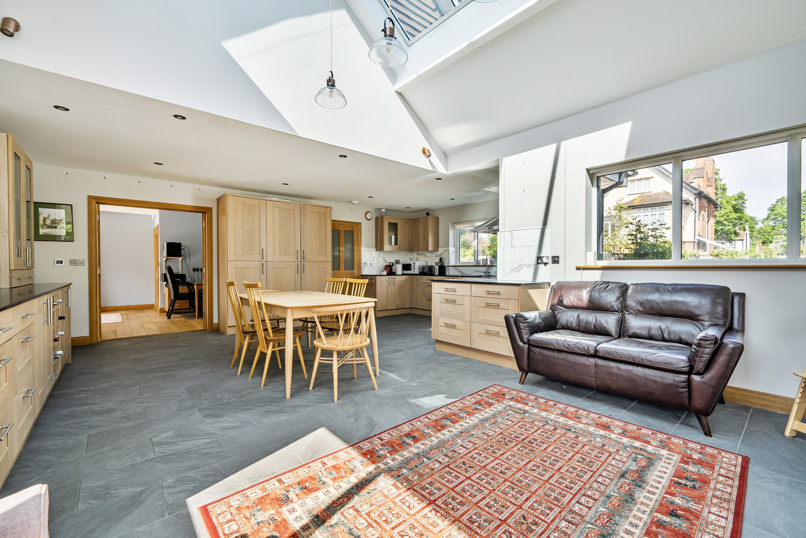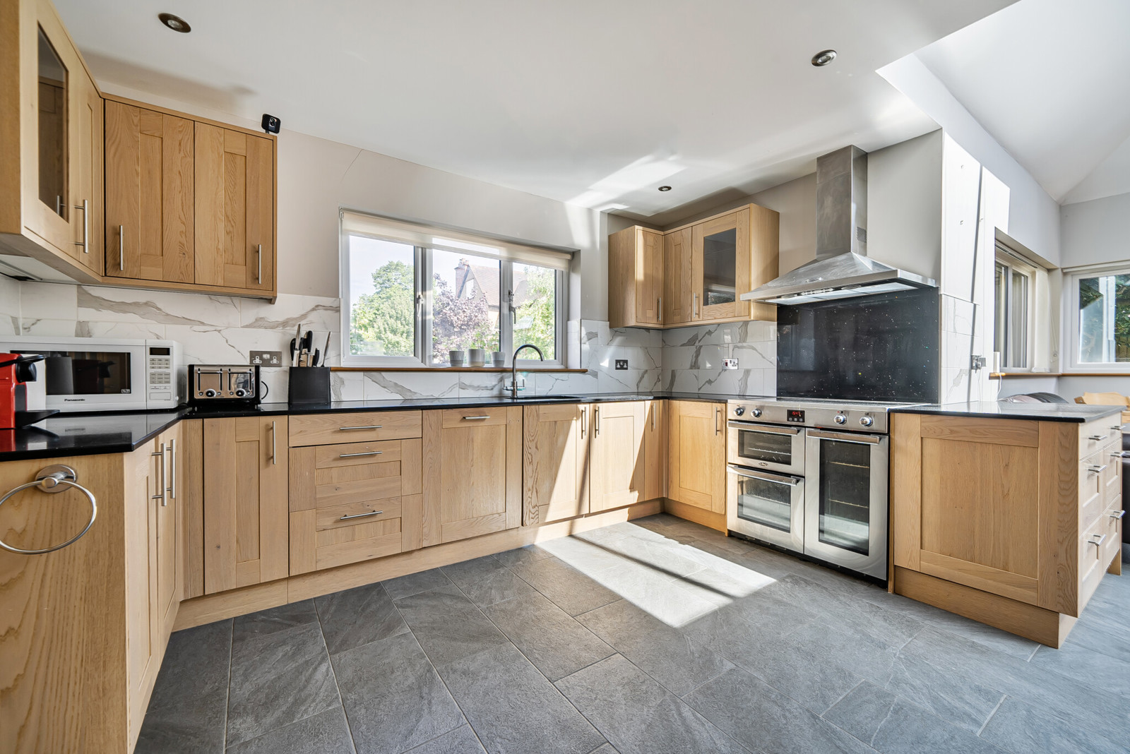 Tucked away in a prestigious tree-lined location, this beautifully designed detached home offers an exceptional blend of modern elegance and family-friendly functionality. Built in 2018 to a bespoke specification, the property boasts impressive proportions, high-quality finishes, and thoughtfully designed living spaces across two floors. With professionally landscaped gardens, underfloor heating, and standout architectural features including a vaulted ceiling, oak woodwork and sky lantern, this is a rare opportunity to secure a truly special home in one of the area's most desirable addresses. EPC Rating B.