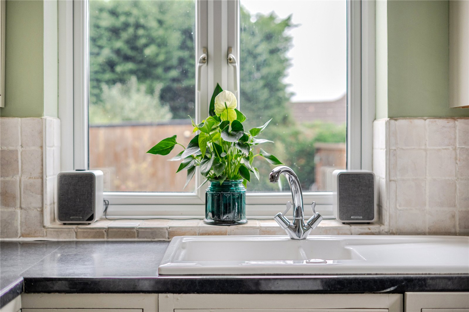 Outside, the garden is a standout feature, stretching close to 100ft in length. A full-width patio is perfect for alfresco dining, while the mature, tree-lined lawn offers total privacy. At the far end, you'll find a large shed and a custom built, air-conditioned cabin, ideal as a home office, studio, gym, or additional living space.