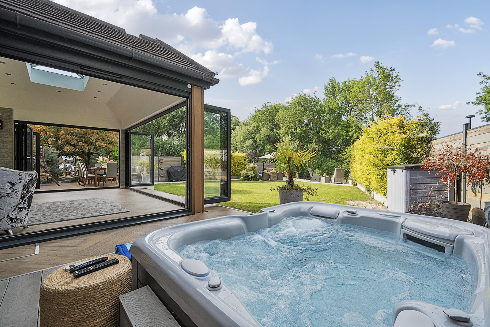 Hot Springs five-person hot-tub with sunken installation 2019 (£15k appliance) with new filters and system clean 2025. Manufacturer Service completed Feb 2025.