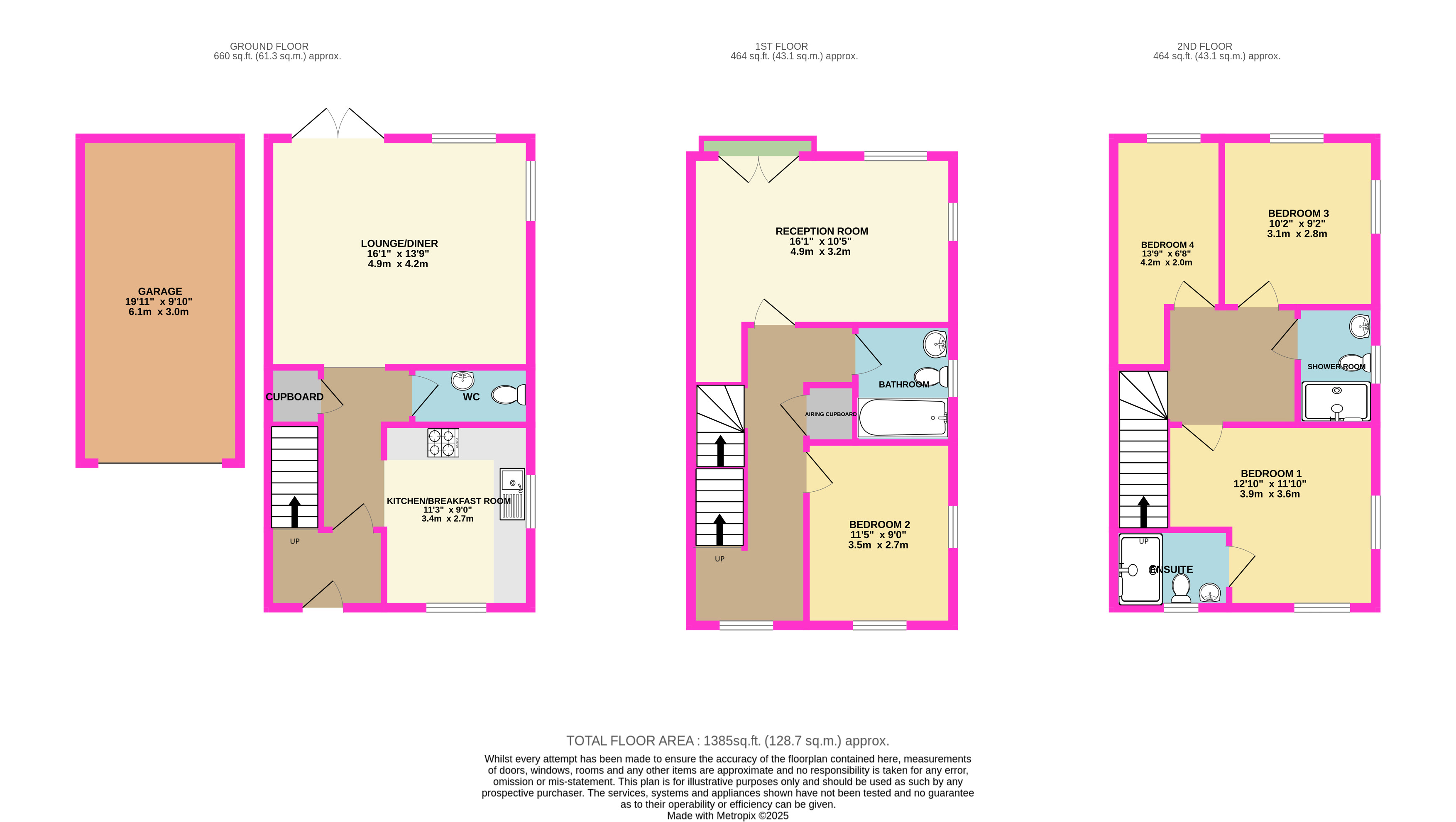 The ground floor features a bright and modern kitchen/breakfast room with integrated appliances and dual-aspect windows, perfect for everyday living and casual dining. To the rear, a spacious living/dining room opens directly onto the private garden, an ideal setting for both relaxation and entertaining. A downstairs cloakroom completes the ground floor.