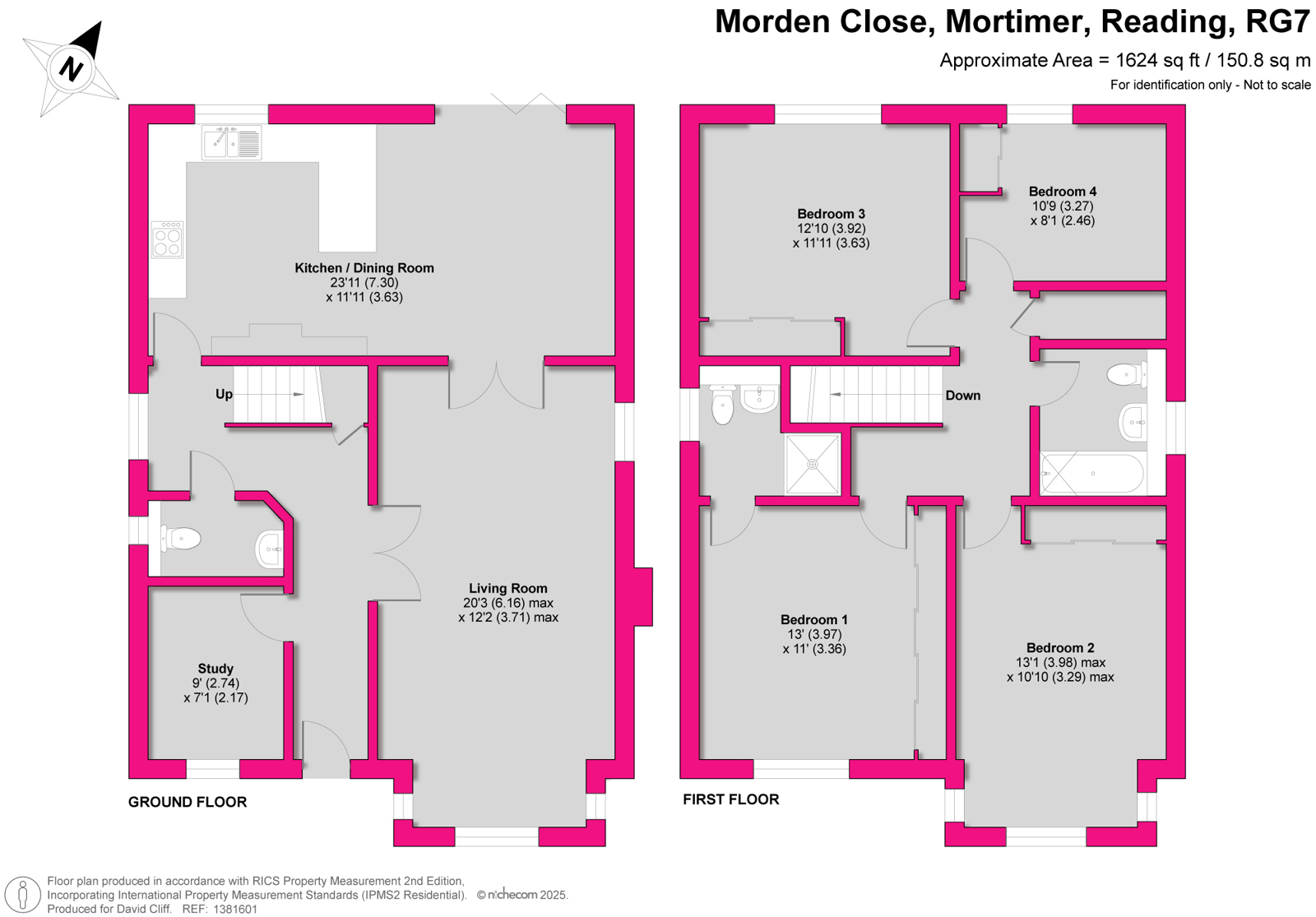 On the ground floor, you are welcomed by a bright hallway leading to a dedicated study, perfect for home working. The property also features a light and airy lounge and a stylish open-plan kitchen/diner with doors opening onto the garden, creating an ideal space for entertaining. A convenient ground-floor WC completes this level.