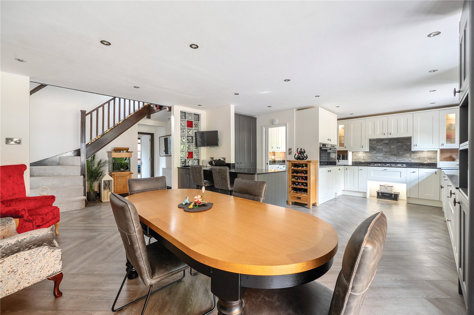 To be sold with a complete chain, discover the perfect multigenerational home set in the heart of Burghfield Common. This impressive six bedroom detached home offers over 3,400 sq ft of beautifully arranged and highly versatile living space, incorporating the main house, a collection of outbuildings and a detached double garage. Lovingly maintained and thoughtfully enhanced by its current owners, Hillside has been designed to offer flexibility in abundance, catering perfectly for evolving family needs, multi-generational living or those looking for space to work from home without compromise.The ground floor strikes a fine balance between modern practicality and characterful charm. At its centre, the open plan kitchen and dining room provides a bright and sociable hub, reconfigured with Building Regulations approval to create a seamless flow between spaces. Modern cabinetry and integrated appliances sit alongside generous dining and entertaining areas, with doors leading directly out to the garden. A more traditional sitting room offers a cosy retreat, featuring exposed beams and a striking brick fireplace housing a log burning stove, while French doors open onto the terrace and gardens beyond. Four well-proportioned double bedrooms complete the ground floor, one of which the current owners use as a snug, highlighting the flexibility of this space. A dedicated study further enhances the layout, making the home ideally suited to modern family life.Upstairs, the property continues to impress with two outstanding principal suites. Each benefits from its own beautifully appointed ensuite bathroom, combining comfort and style, while the larger suite also enjoys the addition of a walk-through wardrobe. This arrangement ensures the first floor is as private as it is luxurious, creating a wonderful retreat away from the main living areas.Burghfield Common itself is a thriving and sought after village, offering a wealth of amenities including shops, cafés, a bakery, pharmacy, health centre, leisure centre and both primary and secondary schools. The property enjoys excellent connectivity, with Mortimer and Theale train stations close by and the M4 at Junctions 11 and 12 providing straightforward access to London, Reading and beyond. Beautiful woodland walks and surrounding countryside are only moments from the doorstep, giving this home the rare combination of village convenience and rural charm.