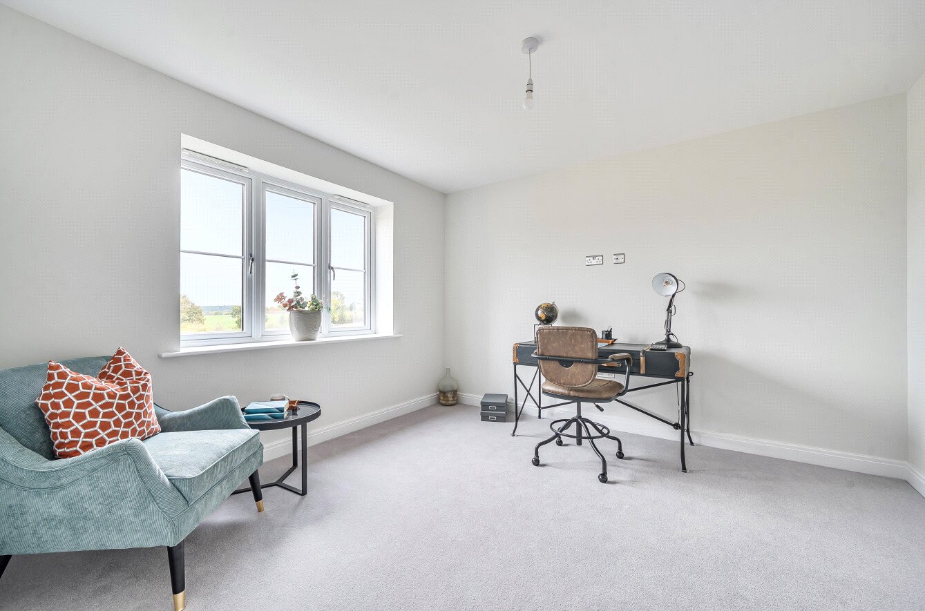 A STYLISH, ENERGY-EFFICIENT FAMILY HOME DESIGNED FOR MODERN LIVING - Set in the heart of sought-after Mortimer Village, this brand-new detached home offers stylish, energy-efficient living within an award-winning development. Similar in design to neighbouring homes on the estate, this property benefits from a slightly smaller rear garden while still providing generous and well-balanced accommodation.Extending to approximately 2,156 sq ft, the house is expected to achieve an EPC rating of A and features solar PV panels, high-performance insulation, and an electric vehicle charging point.The ground floor opens into a spacious hallway with a guest cloakroom and stairs to the first floor. A large front-facing home office provides an ideal work-from-home space. To the rear is the impressive open-plan kitchen, dining and living area the true heart of the home with double doors from the dining space and folding doors from the living area opening onto the patio. A wood burner adds warmth and character, creating a superb space for both entertaining and everyday living.Upstairs are four double bedrooms. The principal suite features a walk-in dressing room and contemporary en-suite shower room, while the second bedroom also benefits from its own en-suite. Two further bedrooms are served by a modern three-piece family bathroom.Mortimer Village offers excellent local amenities, schools and convenient transport links, making it ideal for families and commuters alike.Important Information: Some images are of a similar property and are for illustrative purposes only. An annual Estate Charge of £250 applies. Viewings by appointment.
