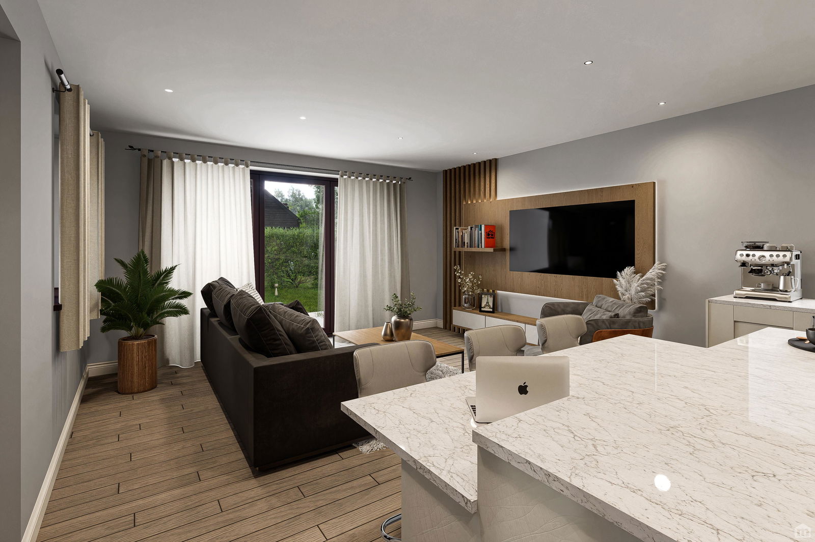 - Contemporary kitchen with integrated appliances