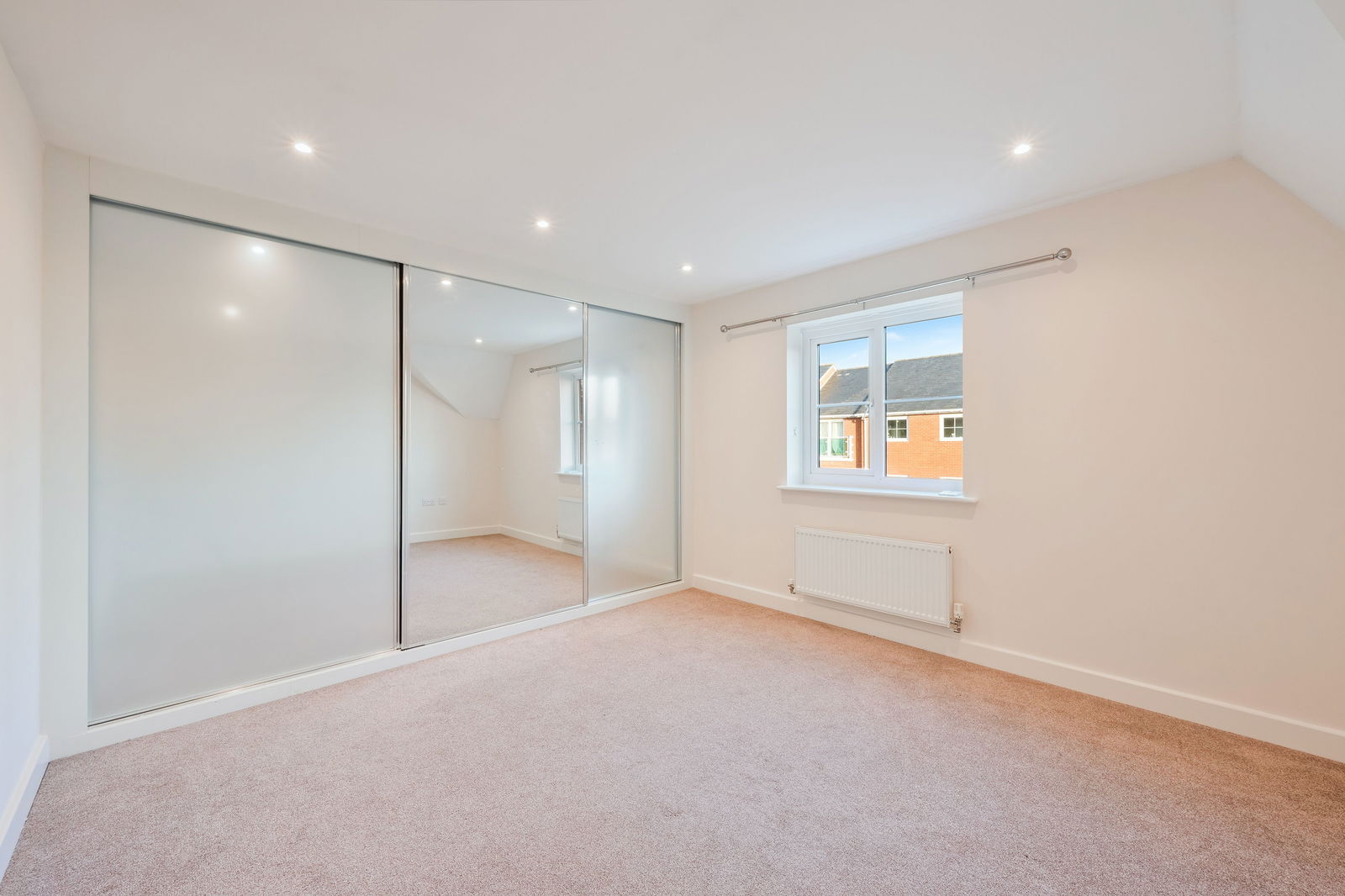 On the second floor are two generous double bedrooms with built-in wardrobes. The main bedroom benefits from an en-suite, while the second includes full-width mirrored wardrobes.
