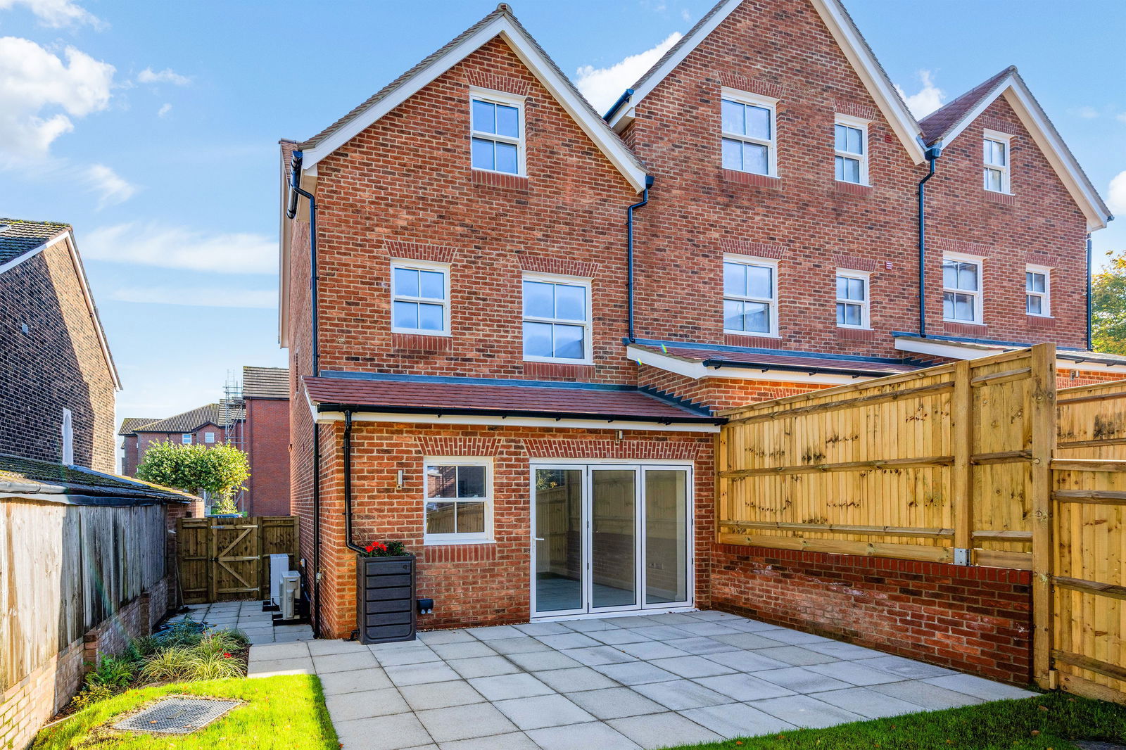 This fabulous new build property, built by a well regarded local developer, boasts four bedrooms, three bathrooms (one en-suite), separate sitting room, kitchen / diner, and downstairs WC. The kitchen/ diner opens onto a west facing garden that features both a patio and lawned area. The property benefits from off road parking with ev charger and an air source heat pump. Air conditioning is an added luxury.