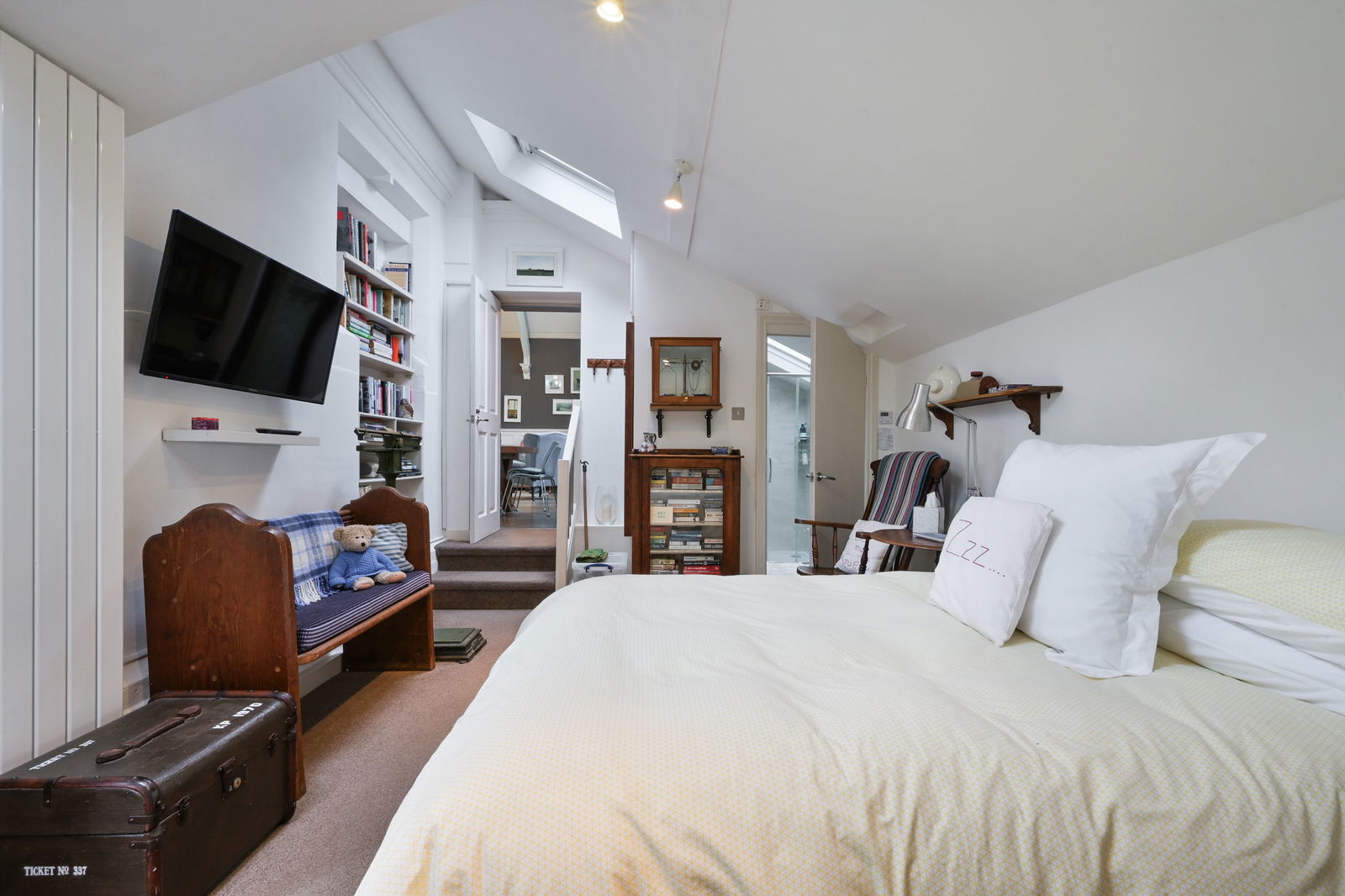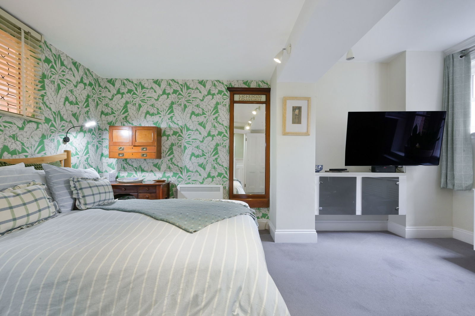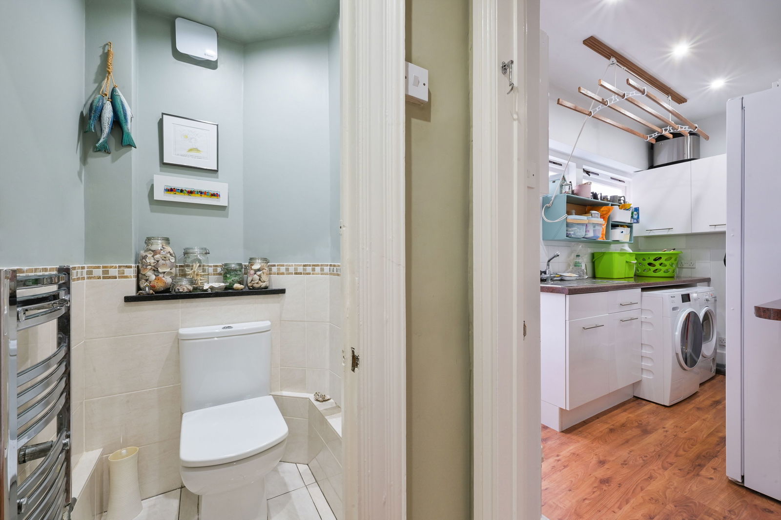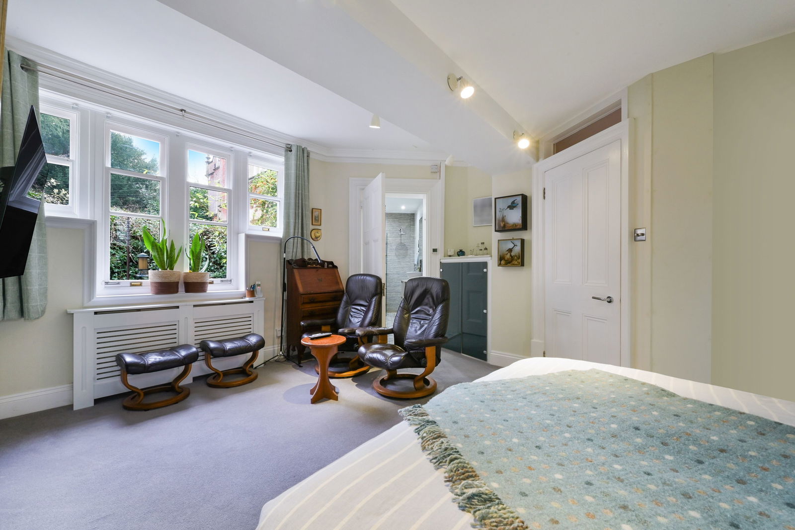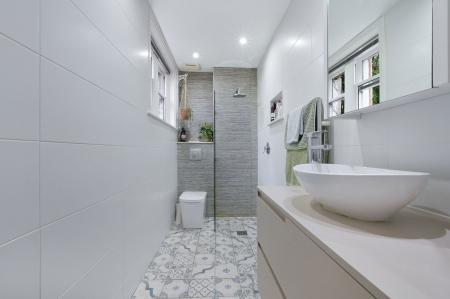 A short step down from the drawing room leads to an attractive bedroom, complete with a walk-in wardrobe, en-suite shower room, and double doors to the garden. Another bedroom is accessed via its own staircase from the drawing room and benefits from an en-suite with bath and underfloor heating. An inner hallway from the drawing room provides access to a further double bedroom, a spacious wet room with underfloor heating. Adjacent to this bedroom is a fitted dressing room. Additionally, there is a separate cloakroom, and a useful utility room with rear access.