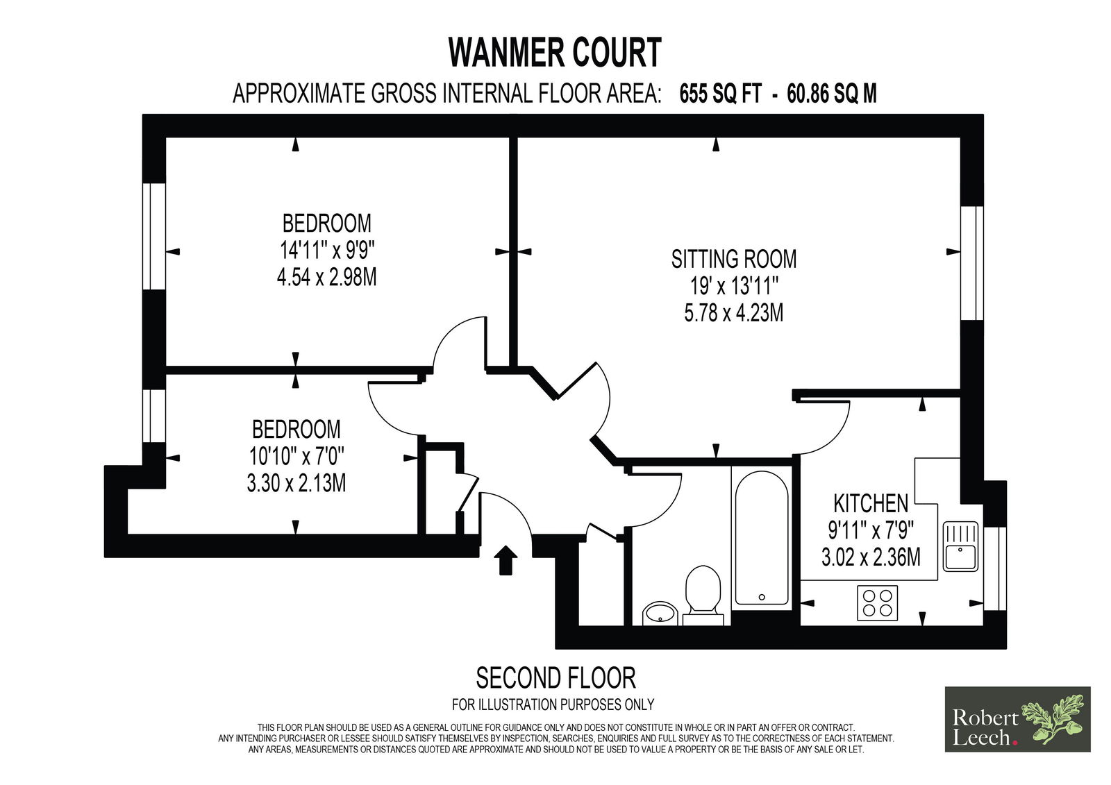 The accommodation comprises a spacious reception room with a separate fitted kitchen and a bathroom appointed with both bath and shower facilities. The principal bedroom enjoys attractive elevated views across Reigate Hill, whilst the second bedroom offers flexible use as a bedroom, study, or dressing room.