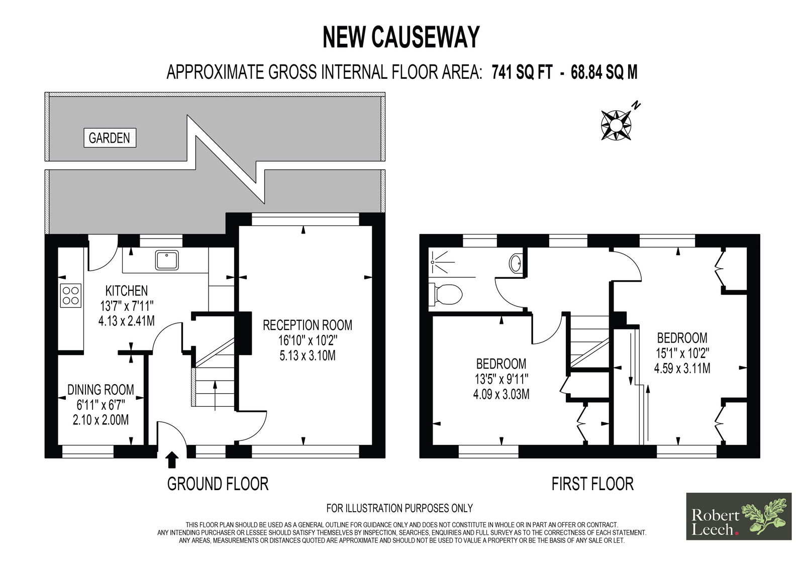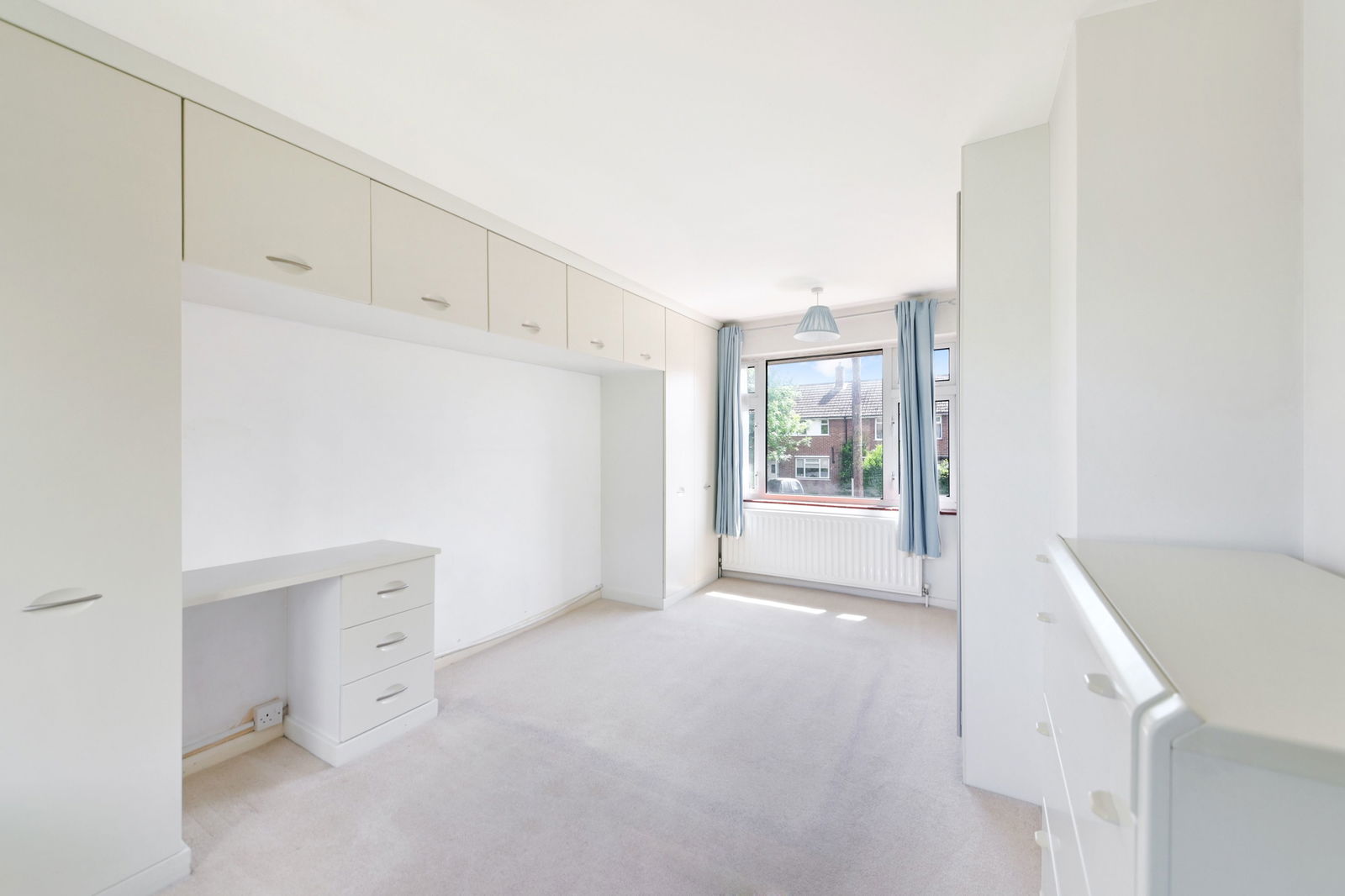 Upstairs, the main bedroom comfortably accommodates a king-size bed and includes ample fitted storage. The second double bedroom also features built-in wardrobes and clever storage solutions, making it ideal for guests, children, or use as a study.