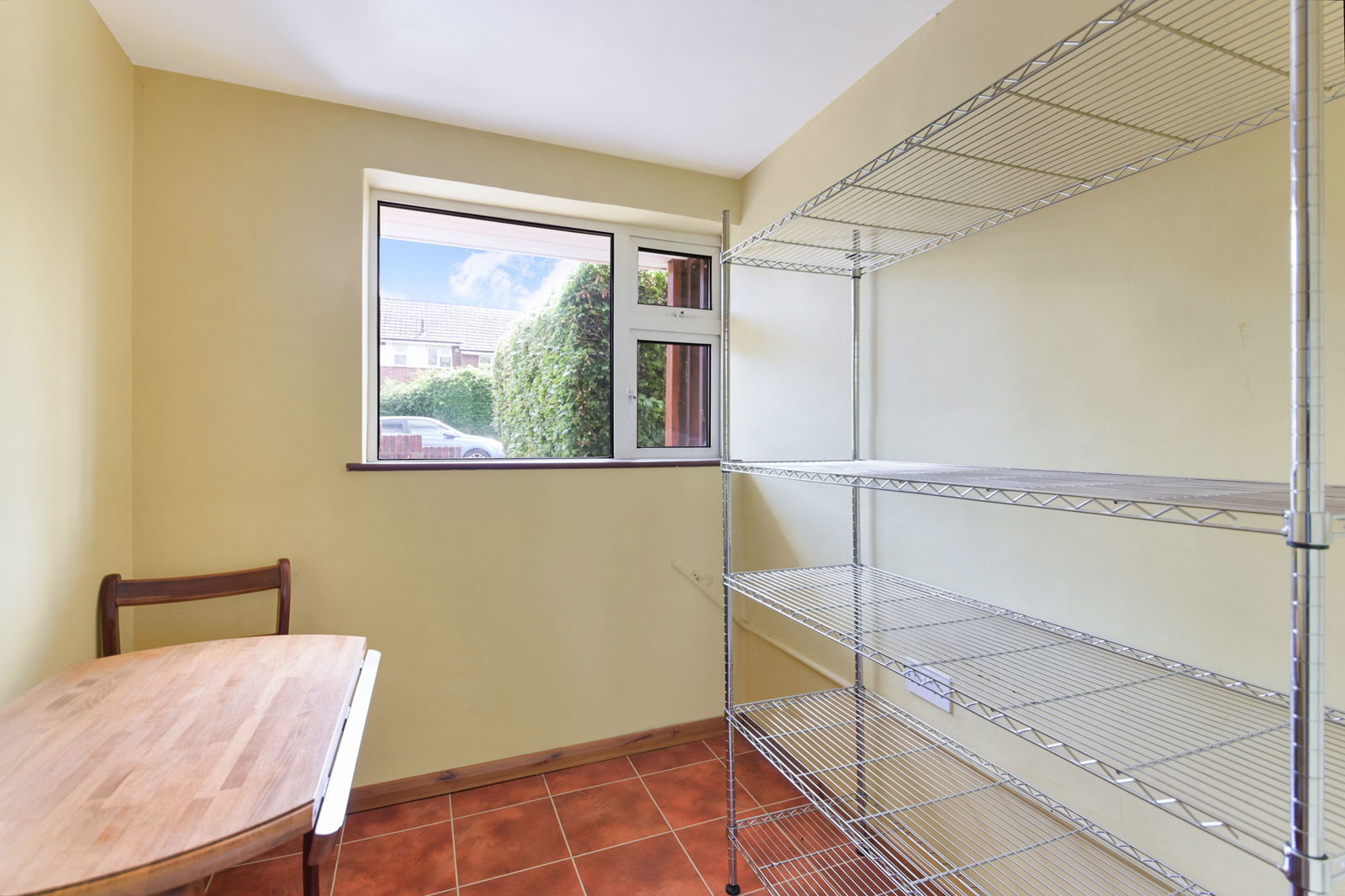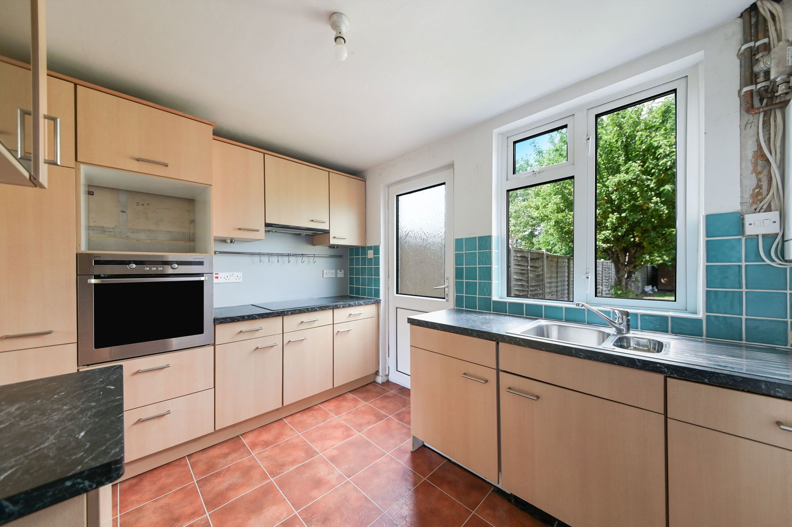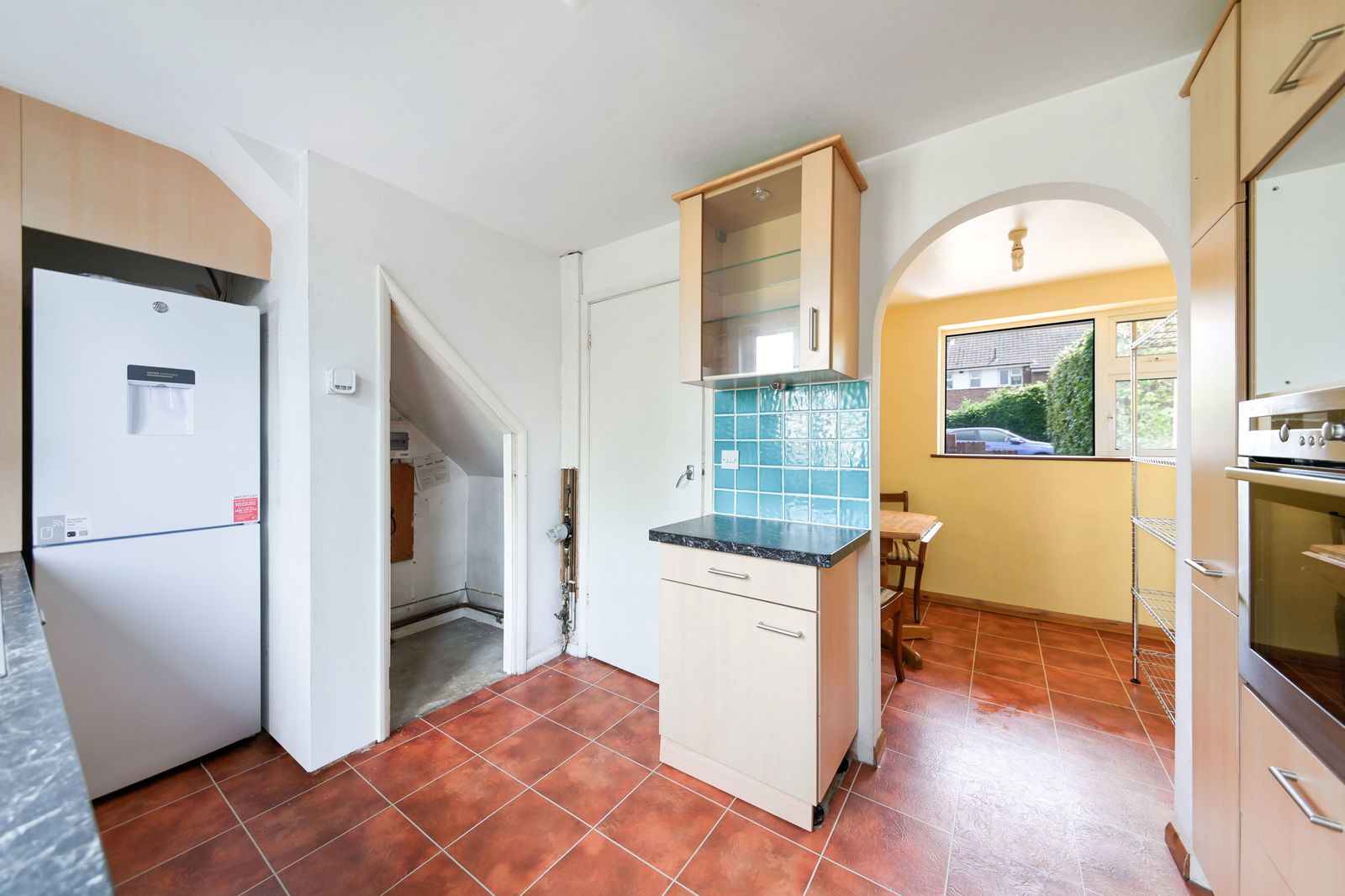 To the rear, the fitted kitchen enjoys views over the substantial garden and is fitted with quality integrated appliances and a recently installed boiler. An adjoining reception space offers additional versatility – whether as a dining area, family room, or home office – ready to be transformed into the heart of the home.