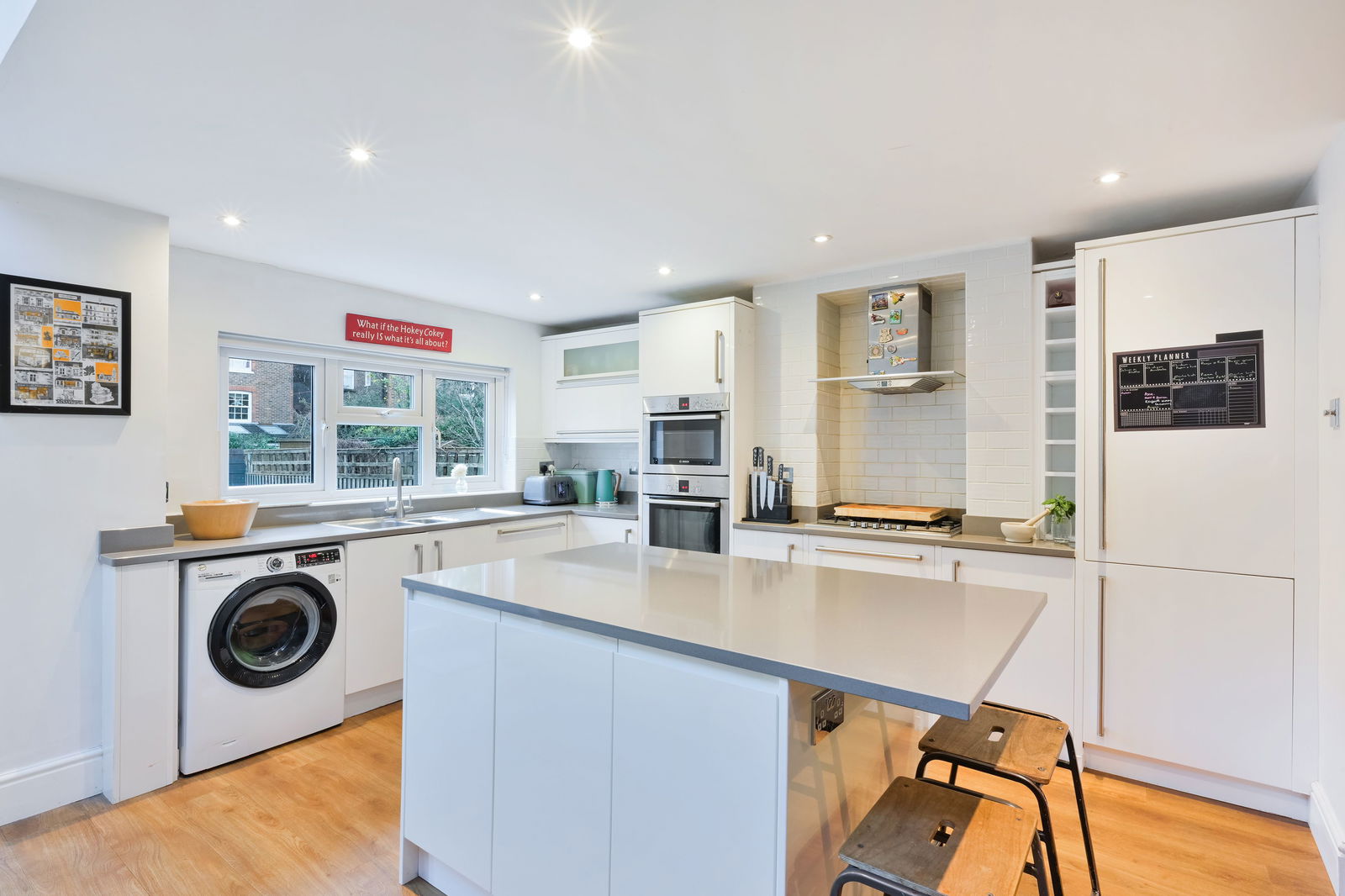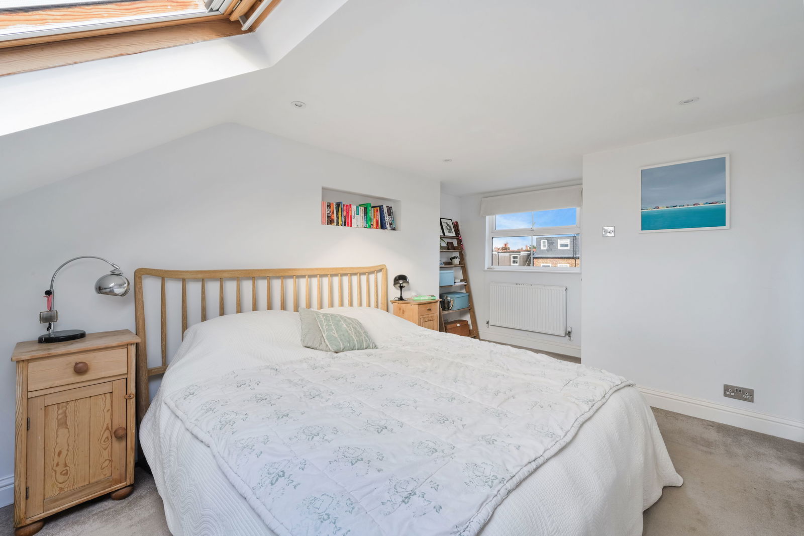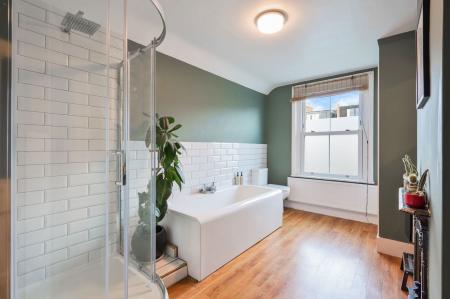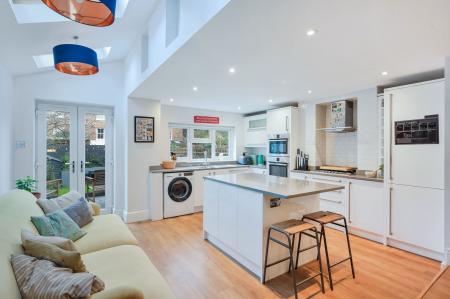 On the ground floor, the sitting room is to the front aspect, with a gorgeous bay window and a log burner creating a beautiful focal point to the room. The kitchen/dining room is the absolute hub of the home and a fantastic space for both family life and entertaining, flooded with natural light through the Velux windows. Double doors give access out into the garden.
