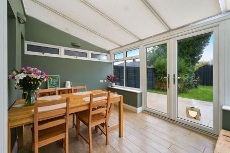 Outside there is a good sized patio providing the perfect space for chairs and a table with the rest of the garden being laid to lawn with shared side access through an alleyway from the driveway.