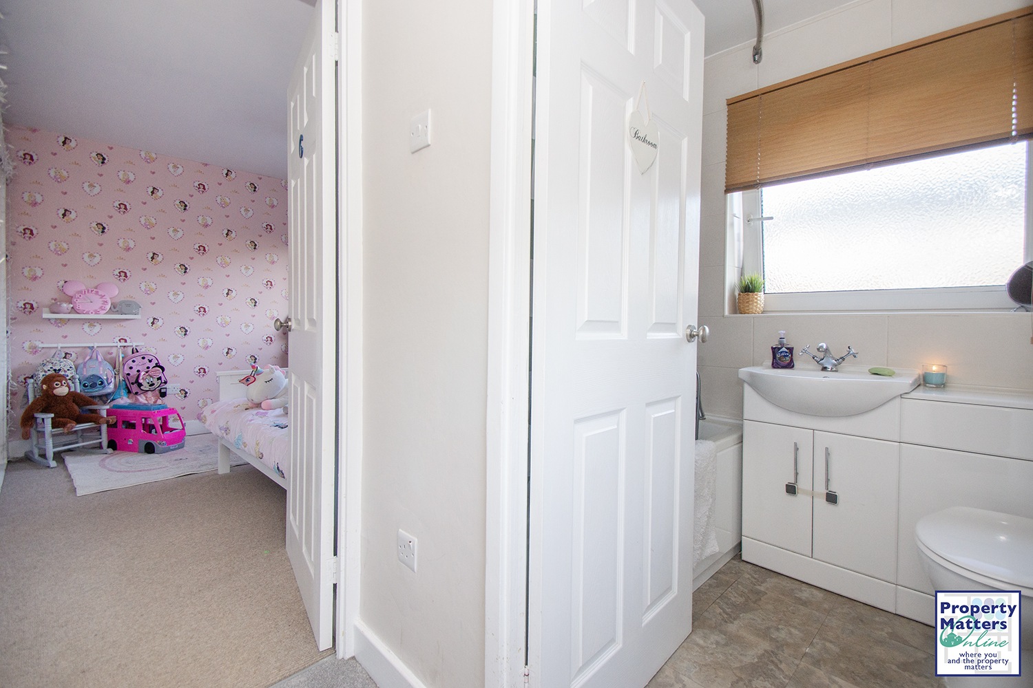 Upstairs, the property offers three well-proportioned bedrooms and a contemporary family bathroom with a three-piece suite. Bedroom two further benefits from large fitted wardrobes, providing excellent storage.