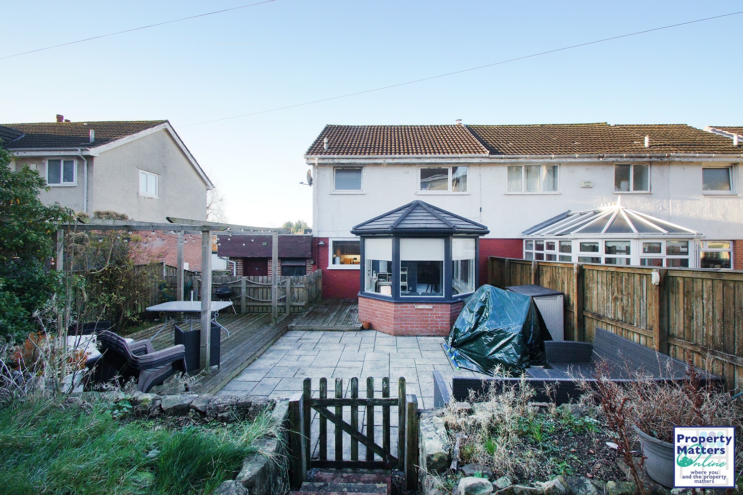 Externally, the home enjoys an open outlook to the front, a driveway, and a single garage. The generous rear garden is perfect for outdoor living, featuring a large deck with pergola and a spacious patio—ideal for dining, entertaining, and relaxing.