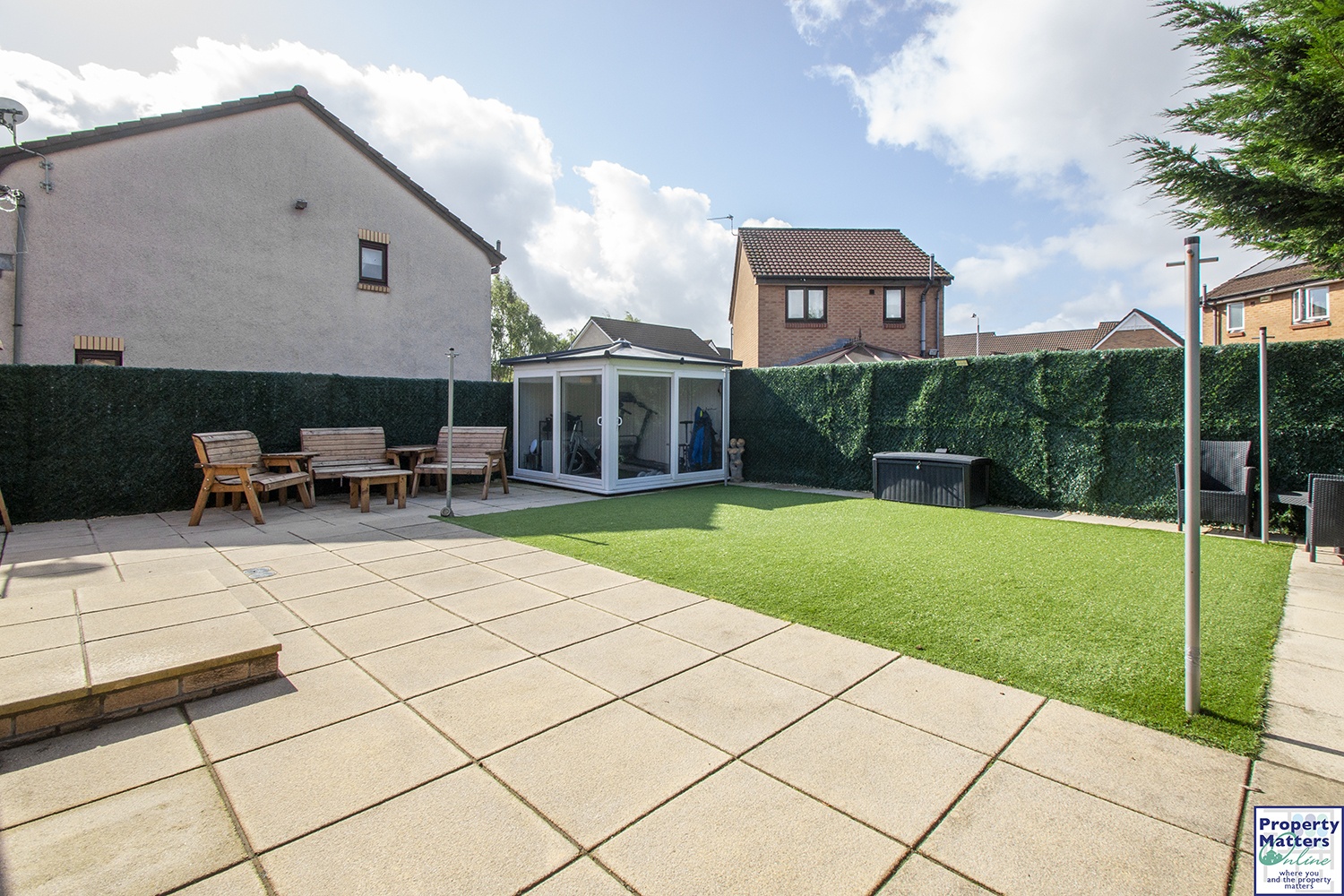 The property boasts immaculate front and rear gardens. The front garden has artificial lawn. The fully enclosed private rear garden has artificial lawn and patio areas. In addition, there is a versatile garden room with power which could offer several options. The rear garden is an ideal spot for relaxation and entertainment.