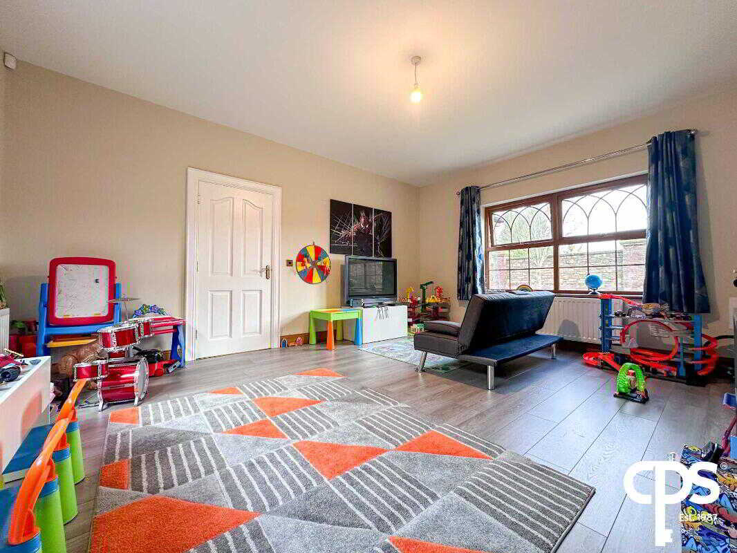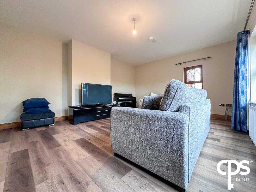 This spacious living room comprises of wooden style flooring throughout. This room benefits from copious amounts of natural light and numerous electrical sockets and tv points within. The fireplace is currently left unfinished.