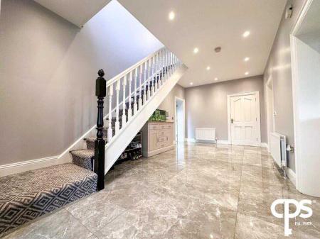 Step inside to the grand entrance hall with feature staircase, high ceilings and luxurious Pamesa Ceramica Ascolano Spanish ceramic tiles under foot.