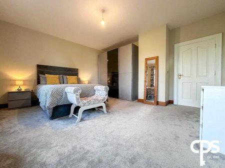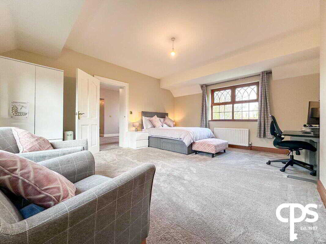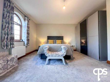 This luxurious carpeted main bedroom comprises of copious space for king size bed. Two high arched windows allows for plentiful light, and the room benefits from two double panel radiators and numerous electrical sockets within.