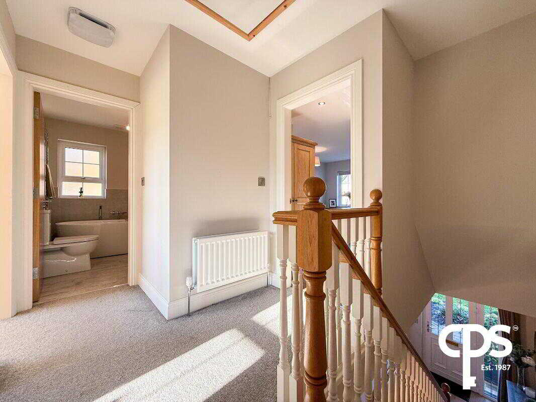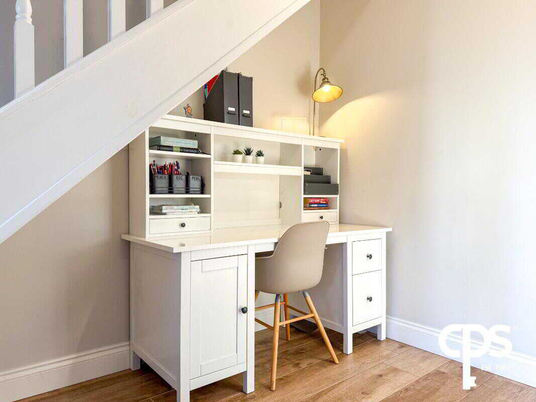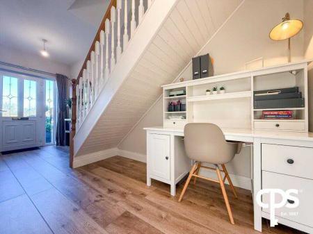 A spacious and welcoming hallway with tiled flooring and under-stair storage providing practical space for coats, shoes, or household items. The area is bright and airy, making a great first impression.