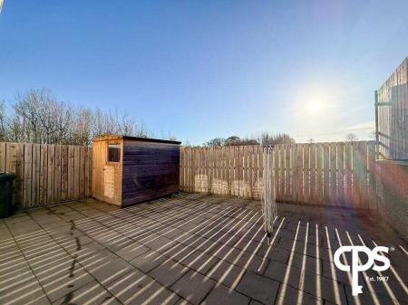 Fully enclosed rear garden with slabbed patio area, space for a shed, and side gate access. Ideal for outdoor dining, entertaining, or family use.