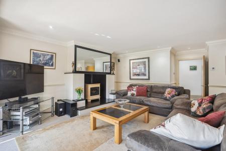 The living/dining room is a great entertaining space and houses a log effect gas fire, with fully glazed french doors at the rear, giving you both views and access to the beautiful grounds.