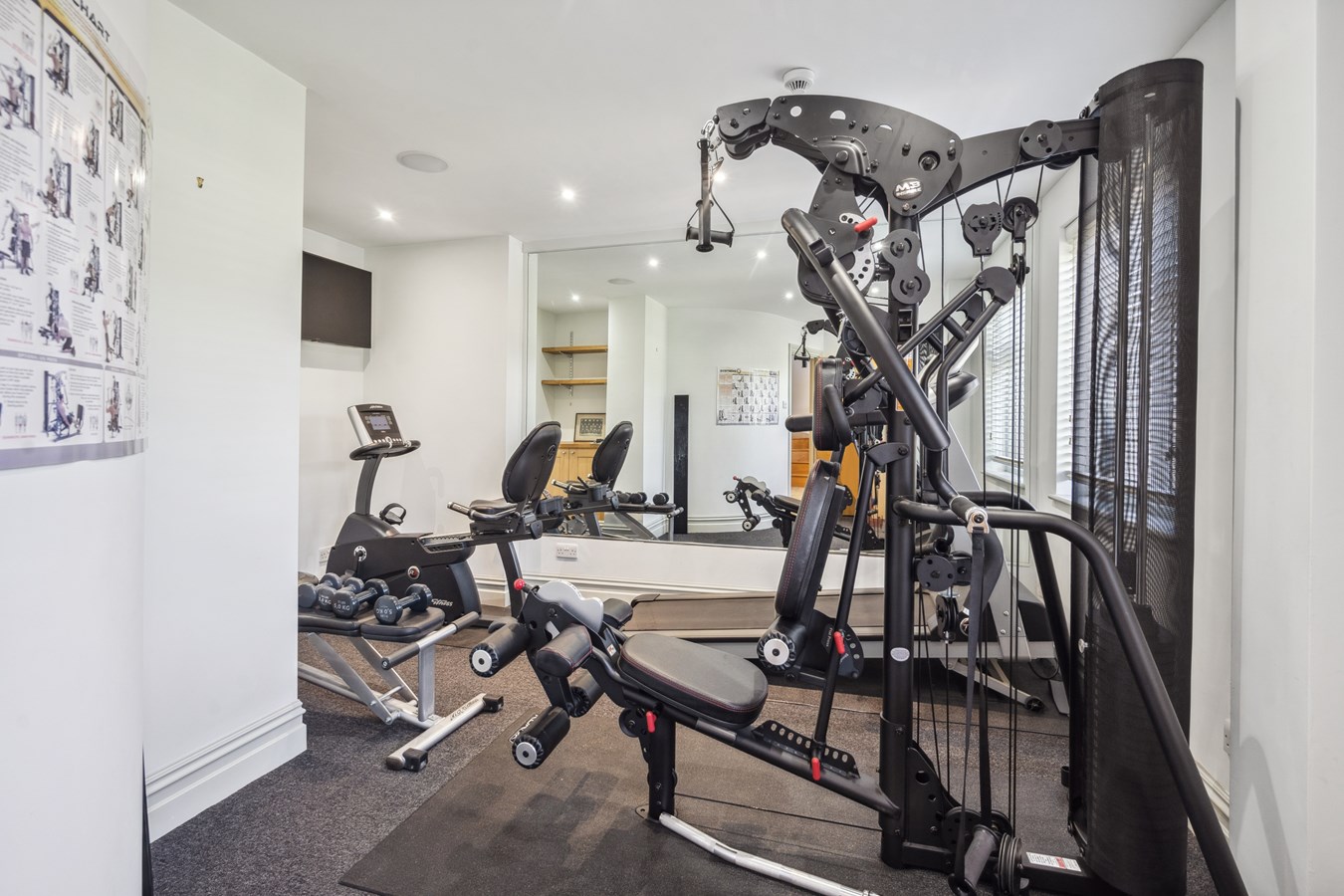 On the ground floor you have a generous hallway that gives you direct access to a 15'5 x 13'9 twin front aspect gym with floor to ceiling mirrors, a 18'6 x 16'6 living/dining room, a cloakroom, a double aspect 16'9 x 11'3 sitting room and a coat/comms cupboard. Also off of the hall is access to a lift which takes you to every floor.