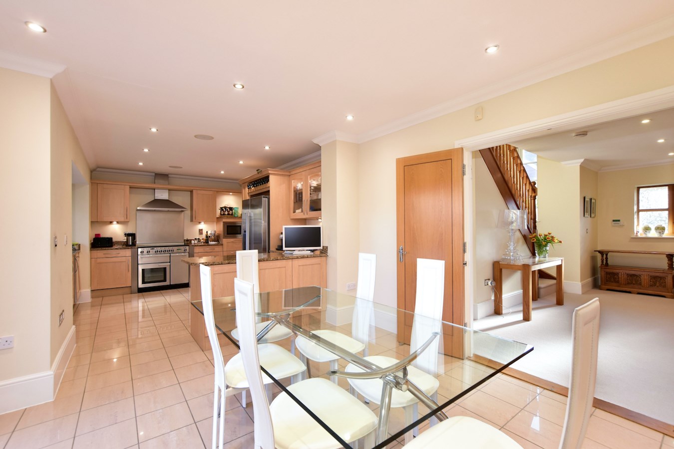 Accommodation includes a stunning, spacious open-plan everyday living/dining area comprising a fitted kitchen with granite work surfaces, dining room and breakfast area and utility room. In addition there is a separate study, the downstairs of the property benefits from underfloor heating.