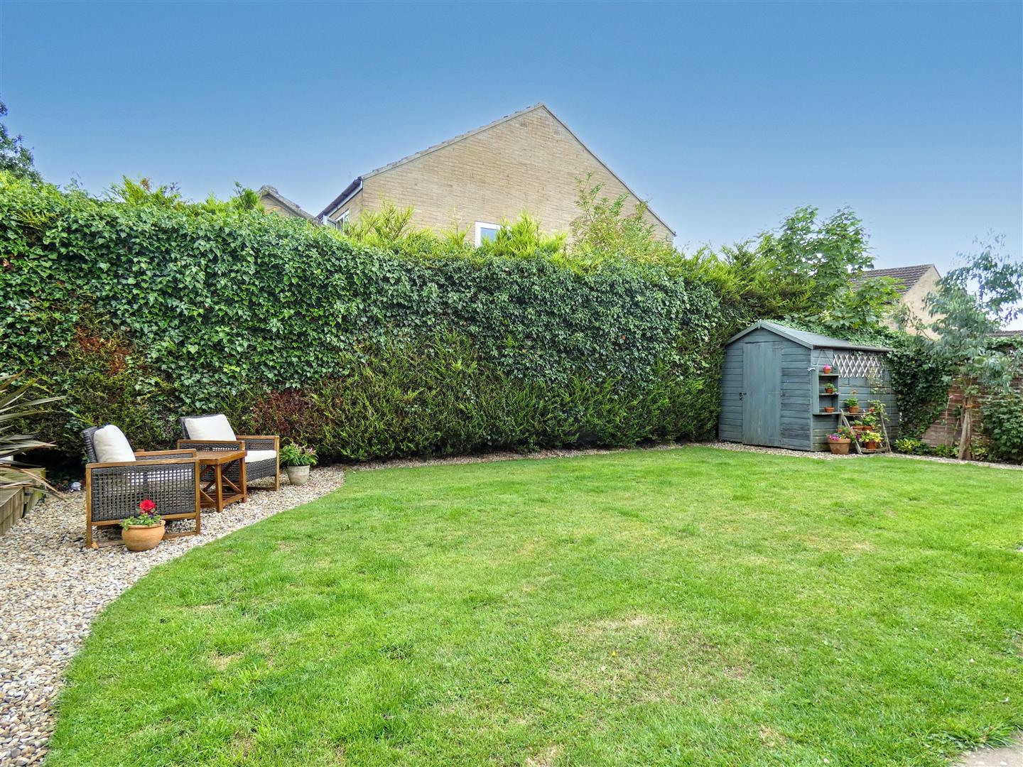 Private enclosed south-facing lawned rear gardens with flagged terrace, mature hedging and walled surrounds and well-stocked borders.
