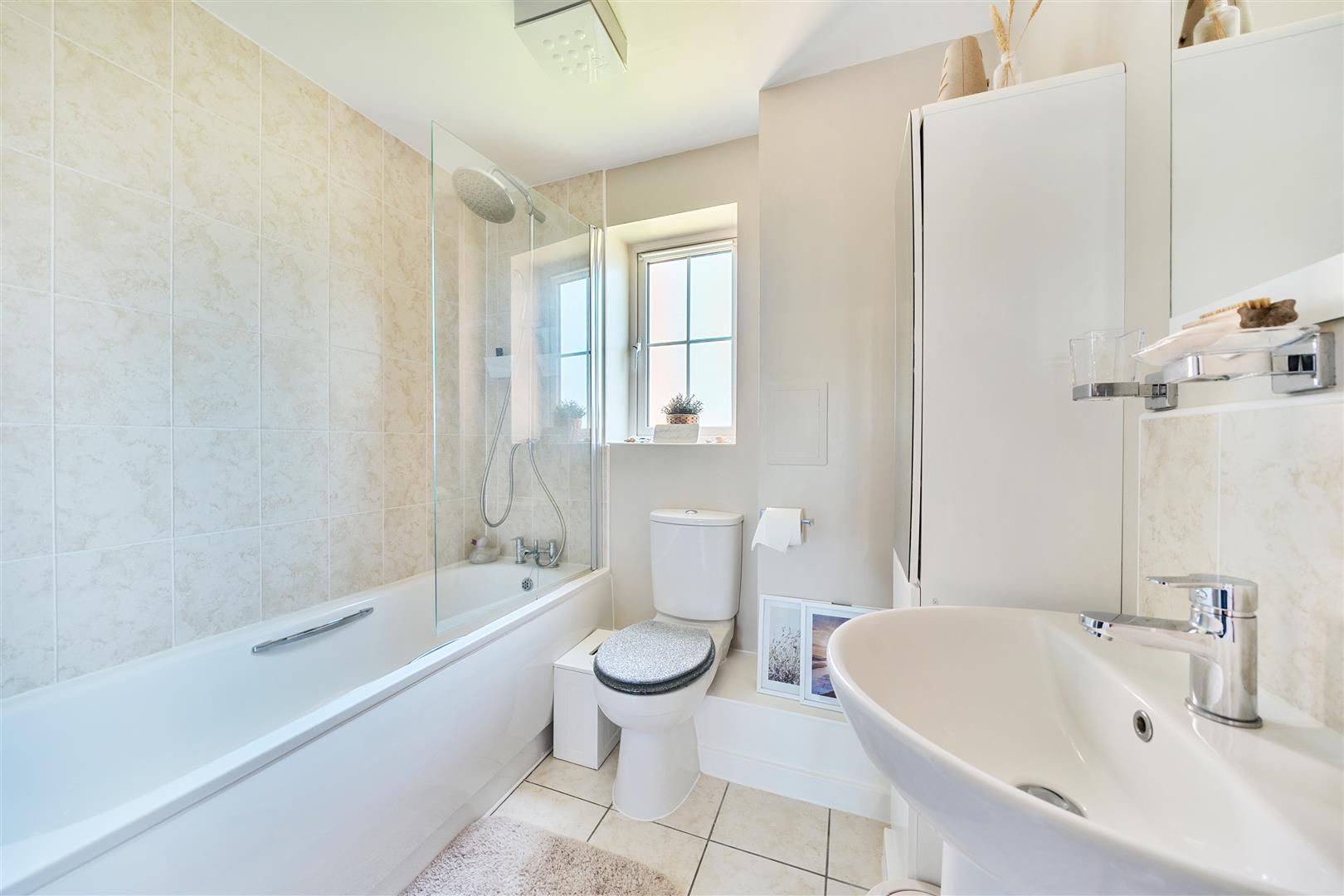 Bathroom - Fitted with a contemporary white suite to include; panel bath with shower over, pedestal hand wash basin and low flush WC. Ceramic tiled floor and double glazed window.