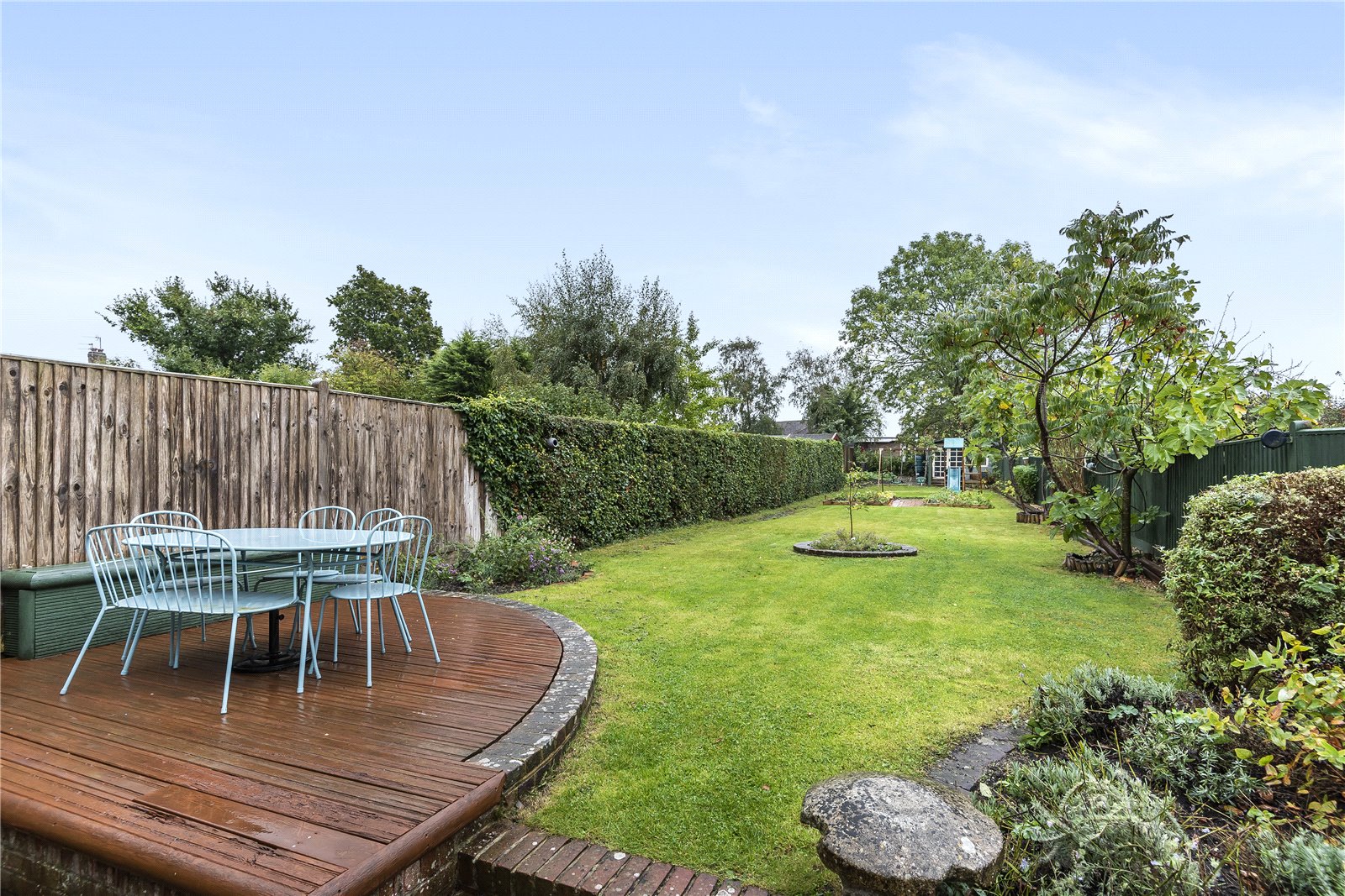 REAR GARDEN: This is a main feature of this wonderful character village home. The garden measures approximately 140 feet in CHAR_LENGTH( to be verified ) and faces in a southerly direction. It comprises of a sun terrace next to the conservatory and there are steps leading up to a raised decked alfresco summer dining area. Beyond are extensive lawn areas with a play area for children divided by a small vegetable garden with a red brick path and further beyond at the far end of the garden past the fruit trees is a further vegetable garden and summer house / storage shed.