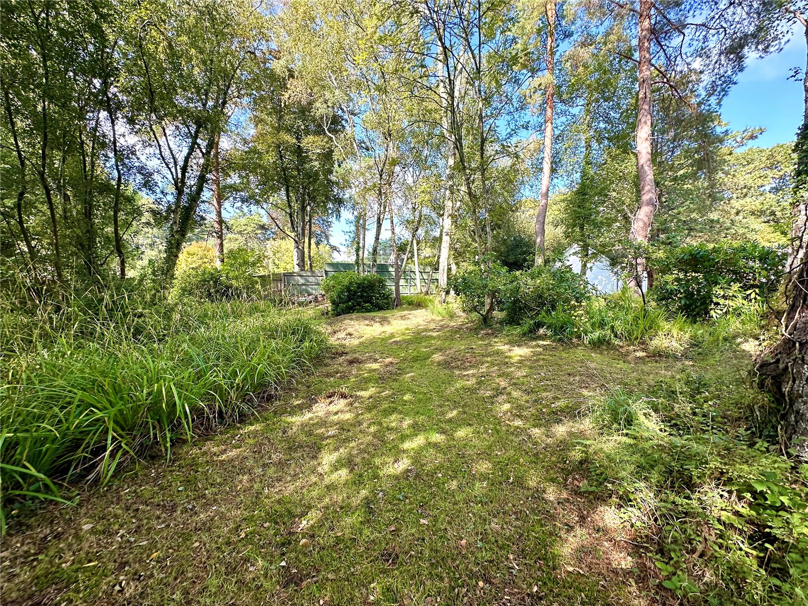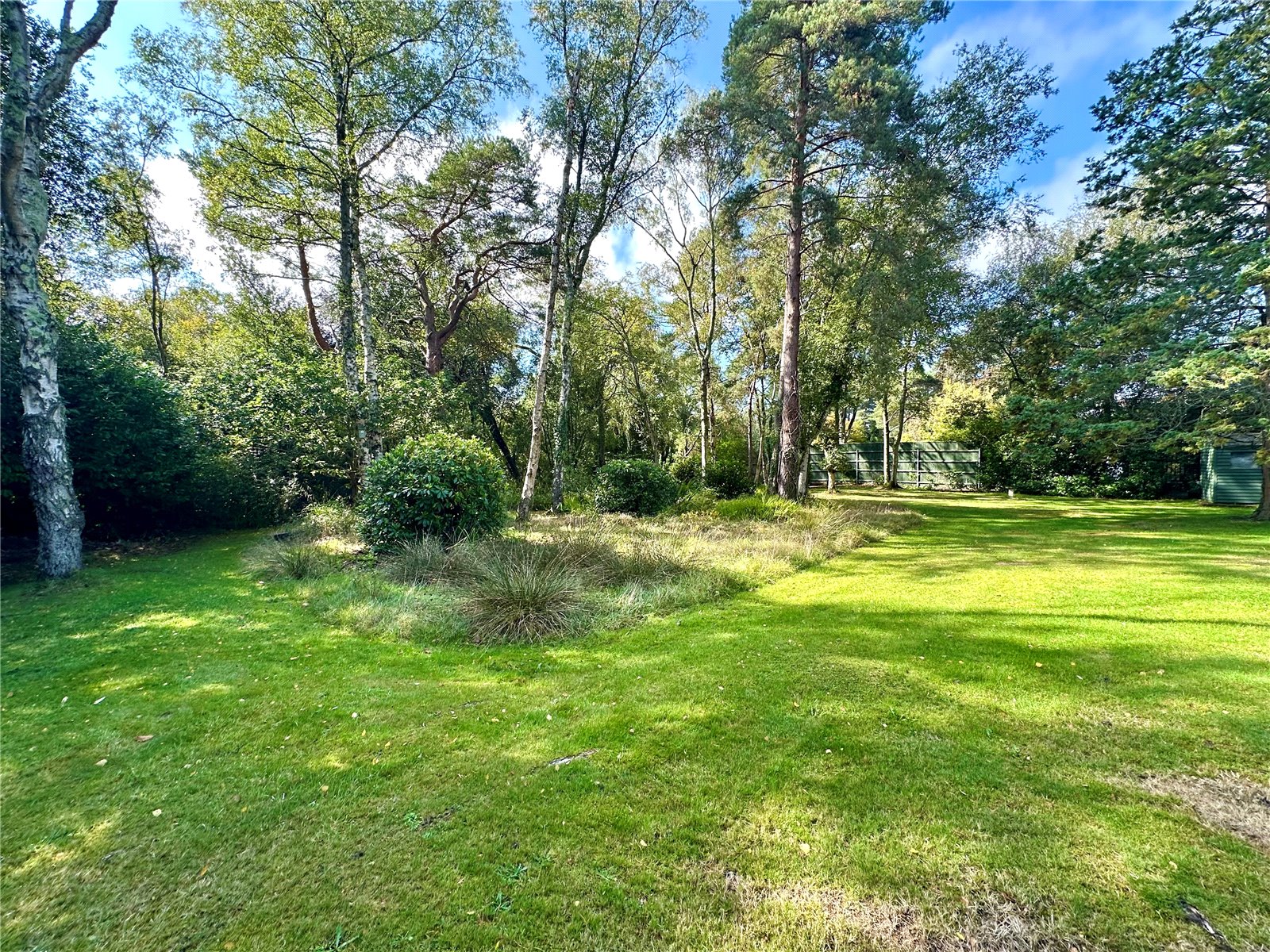 To the rear, the south-facing garden offers a wonderful balance of outdoor living and natural beauty. A raised decked terrace is perfectly positioned for alfresco dining, while the sweeping lawns, wildflower garden, rhododendrons, and a variety of mature shrubs and trees create a picturesque and tranquil setting. The garden enjoys the added benefit of backing directly onto woodland.