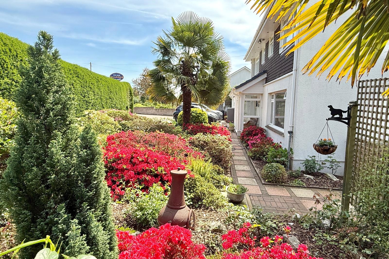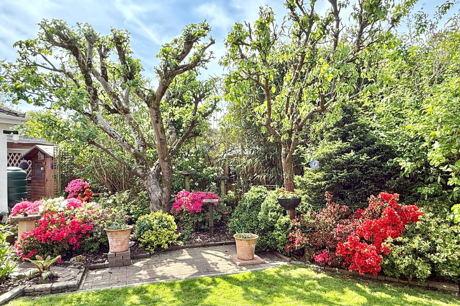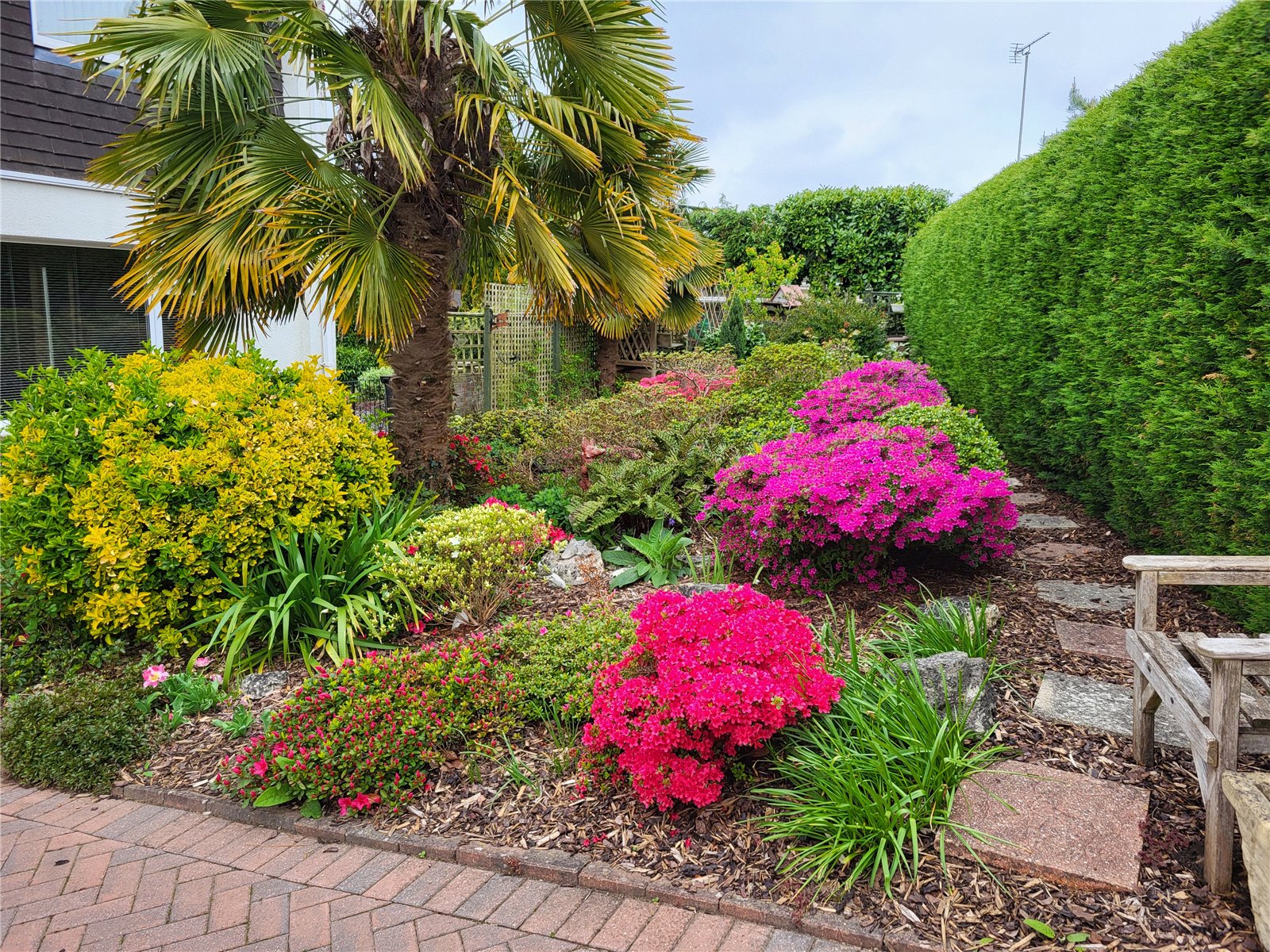 The front garden has an array of shrubs including azaleas, hedging and a vegetable patch. Gate leads to the side and private rear gardens with many seating areas and a courtyard that houses the hot tub. Enclosed by a mixture of fencing, mature trees, shrubs and hedging with an area of lawn. Tool sheds and greenhouse.