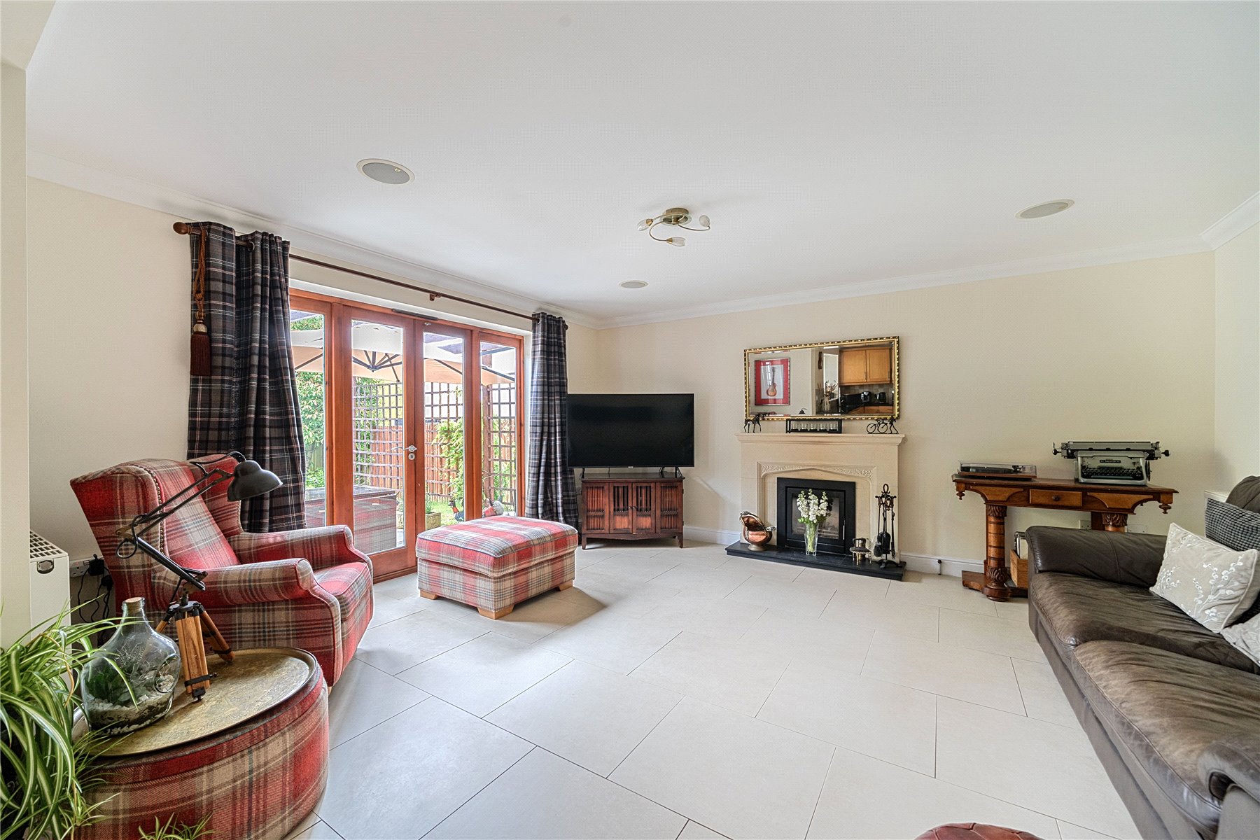 The kitchen is a great-size and fitted with a generous range of shaker-style units with granite work surfaces and a selection integrated appliances. Beyond the kitchen is the bright and airy dining room that offers both wonderful views and access to the rear garden. The main sitting room is positioned to the rear of the property and features an attractive fireplace together with wooden French doors that open out to the garden.