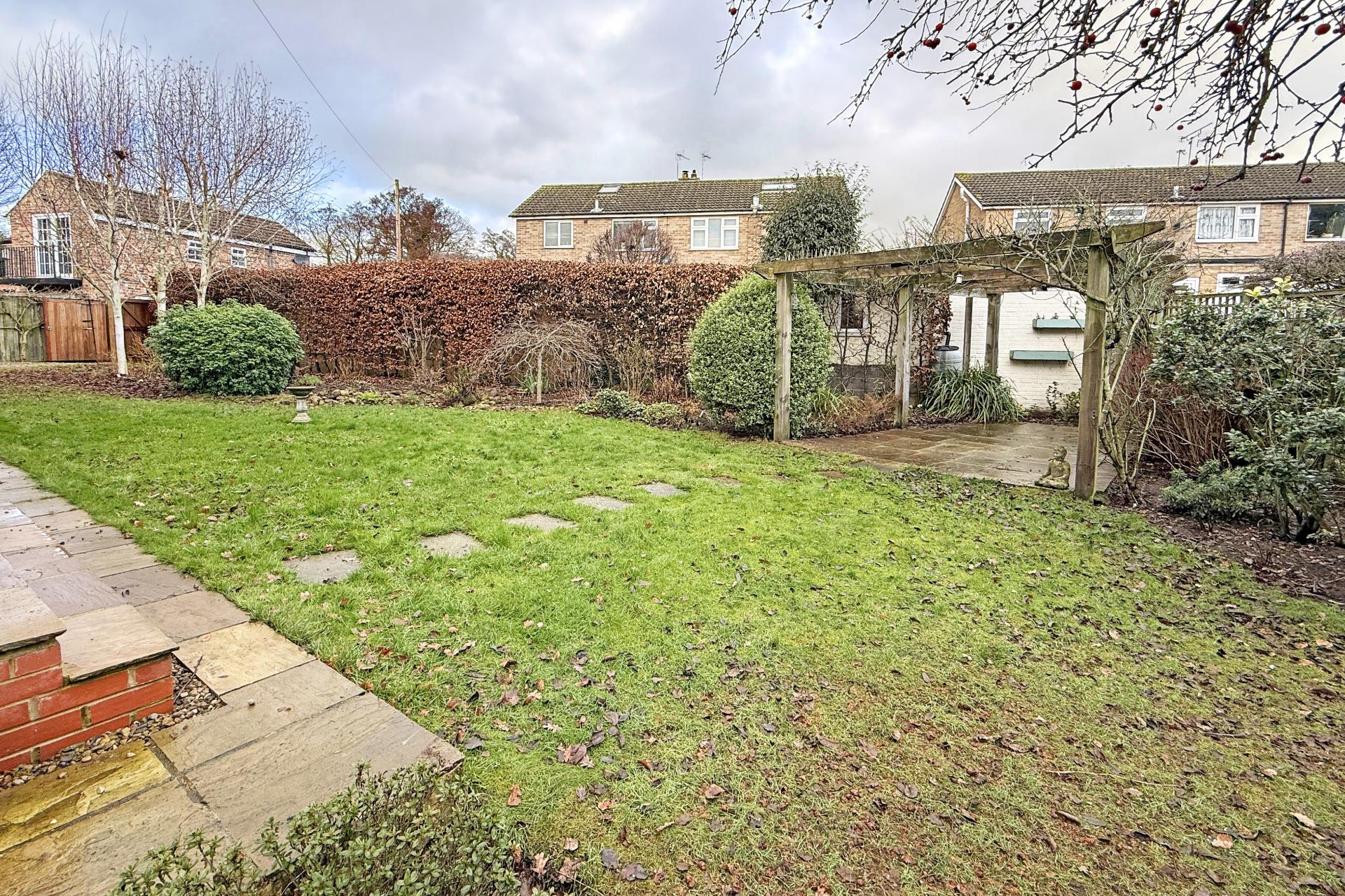 The gardens extend around the property and include lawned areas, mature planting and established borders. The circular layout and gated access create a secure and private outdoor environment, ideal for families and outdoor activities. Two paved seating areas allow enjoyment of the garden throughout the day, while feature lighting enhances evening use.