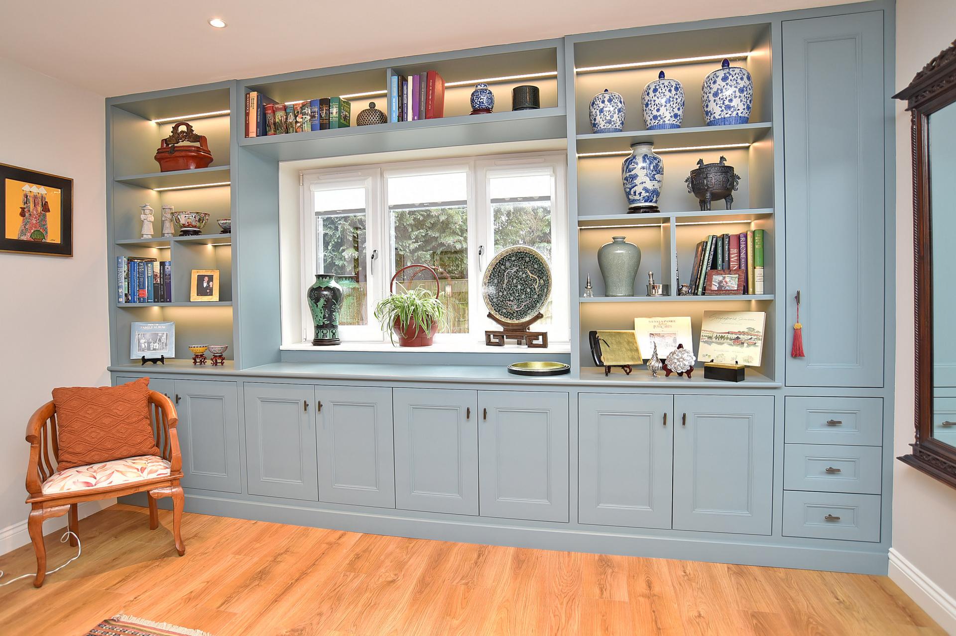 ACCOMMODATION The ground floor is accessed via an impressive entrance hall which offers flexibility to be used as a home office or additional reception area and features built-in storage and a large feature window. The dual-aspect living room provides a comfortable and inviting space to relax and benefits from a recently installed full-length fitted wall unit, incorporating extensive storage and display shelving.