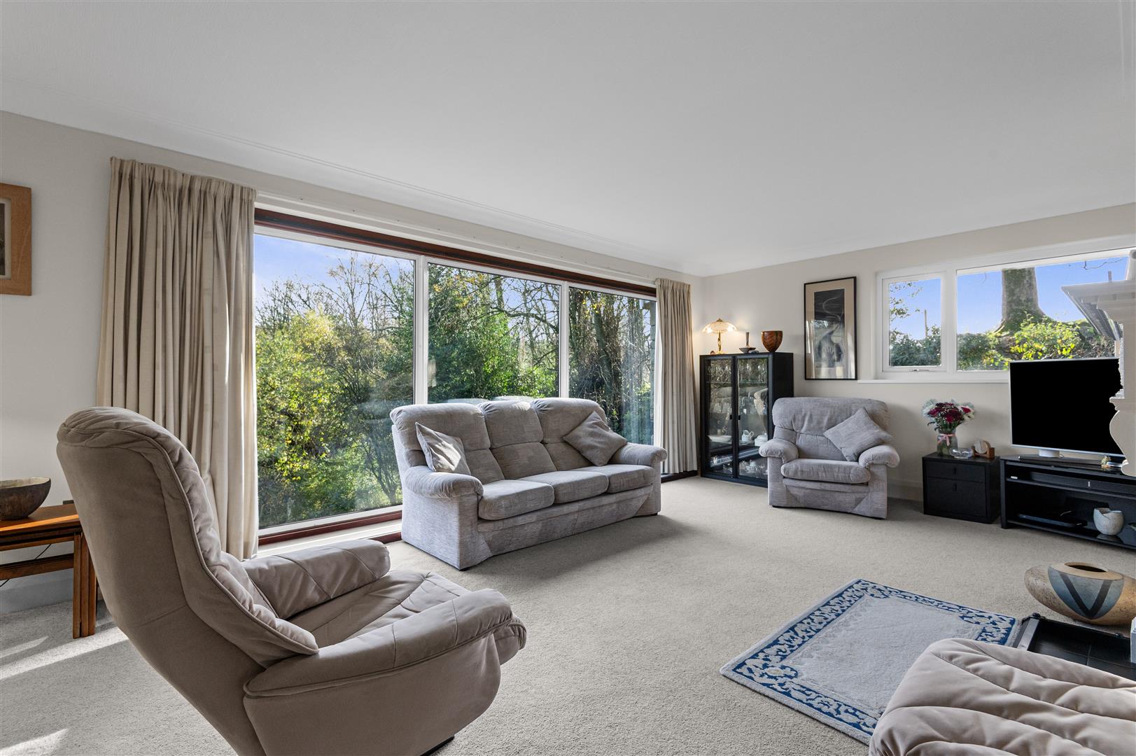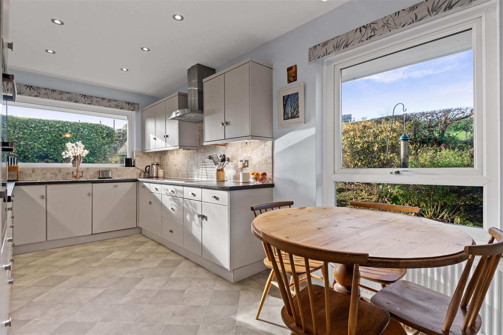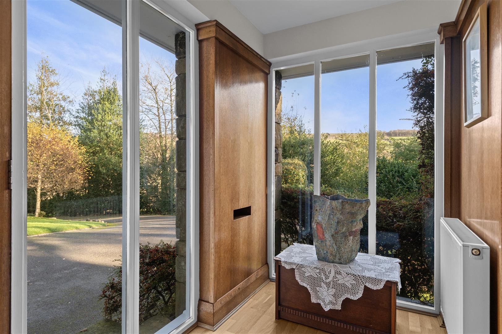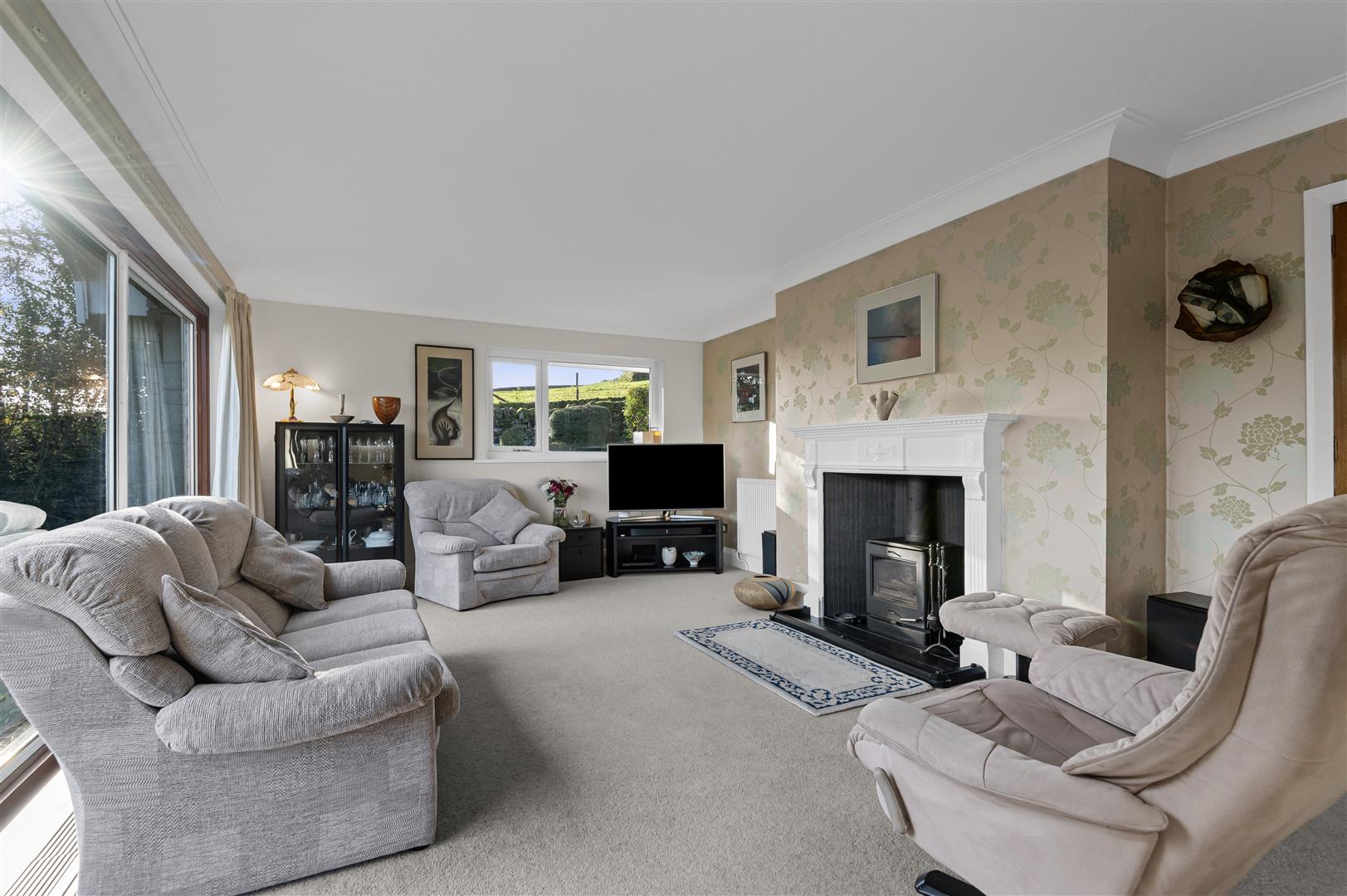 - Spacious lounge with floor-to-ceiling picture windows and log-burning stove