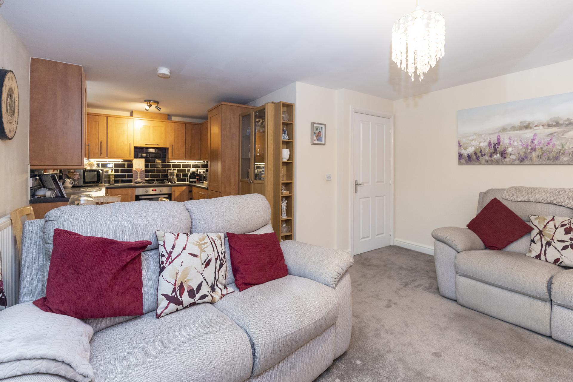 The deceptively spacious accommodation includes a living room open to a fitted kitchen and two double bedrooms complemented by a three-piece en-suite shower room and three-piece bathroom.
