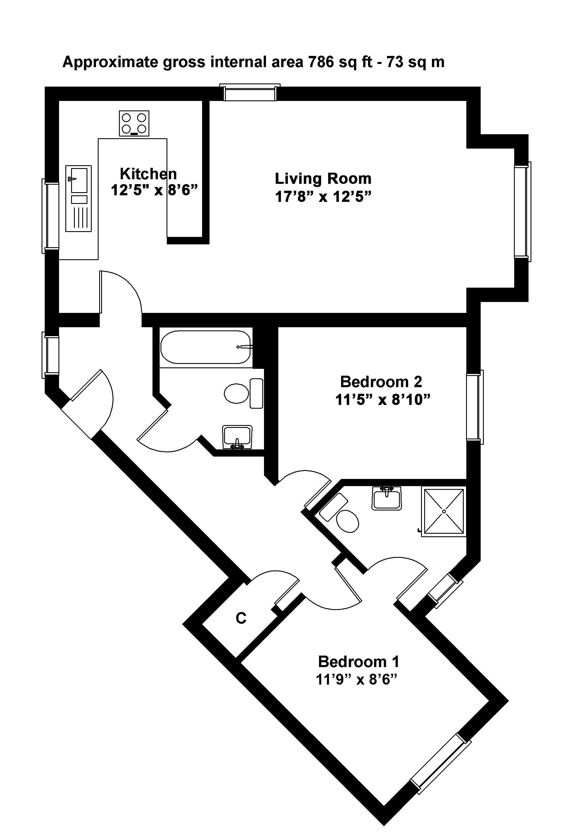 17' 8'' x 12' 5'' (5.4m x 3.8m)