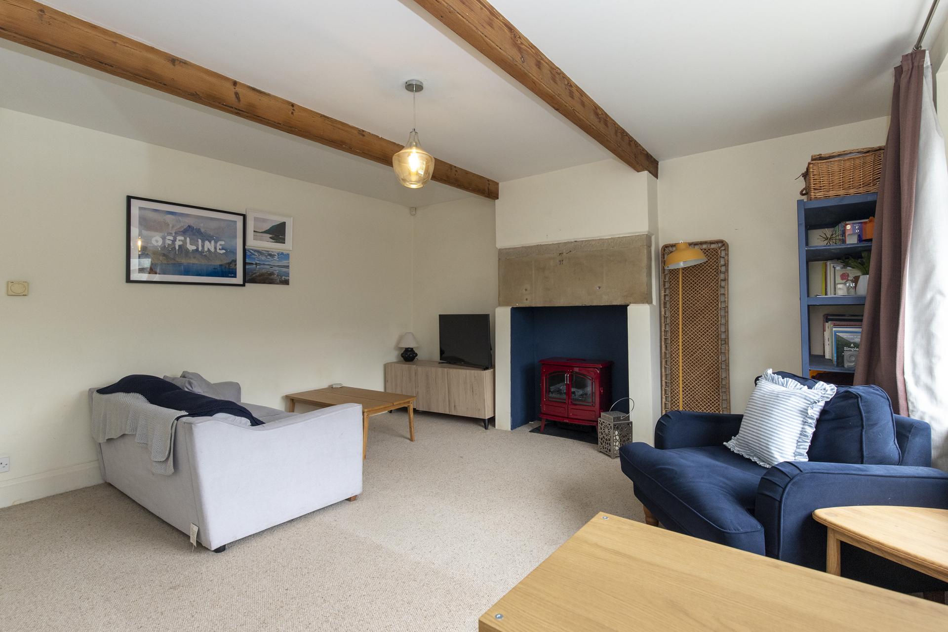 The property is entered directly into a spacious living room with a large window flooding the room with natural light and enjoying an open aspect over the garden and towards woodland. There are exposed beams to the ceiling and feature exposed stonework to the chimney breast.