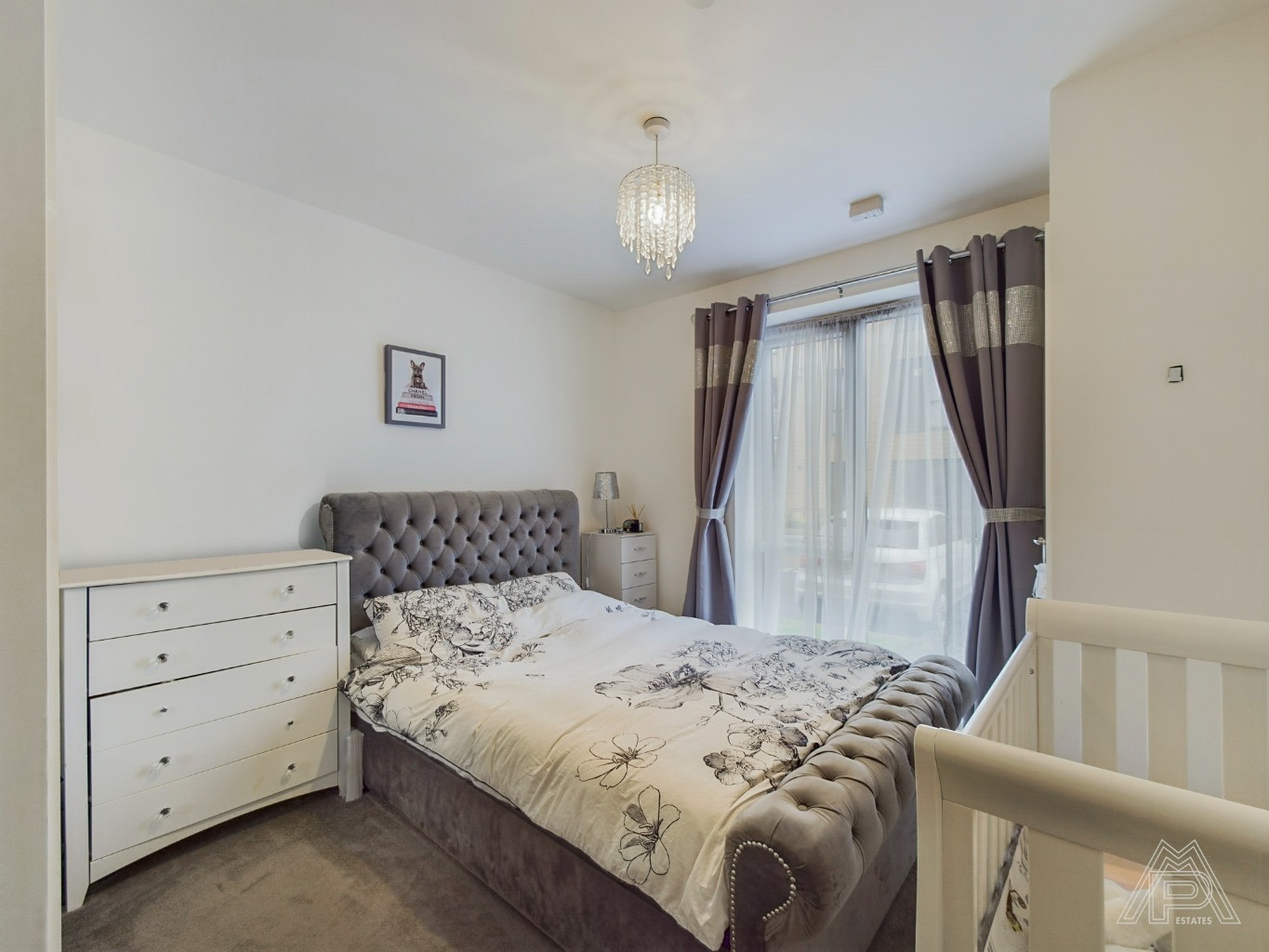 The bedroom is well-proportioned and provides a tranquil retreat at the end of a long day. The neutral decor and plush carpeting create a calming ambiance, while the abundance of natural light creates an inviting and soothing atmosphere. The bedroom also benefits from built in storage space, ensuring a clutter-free living environment.