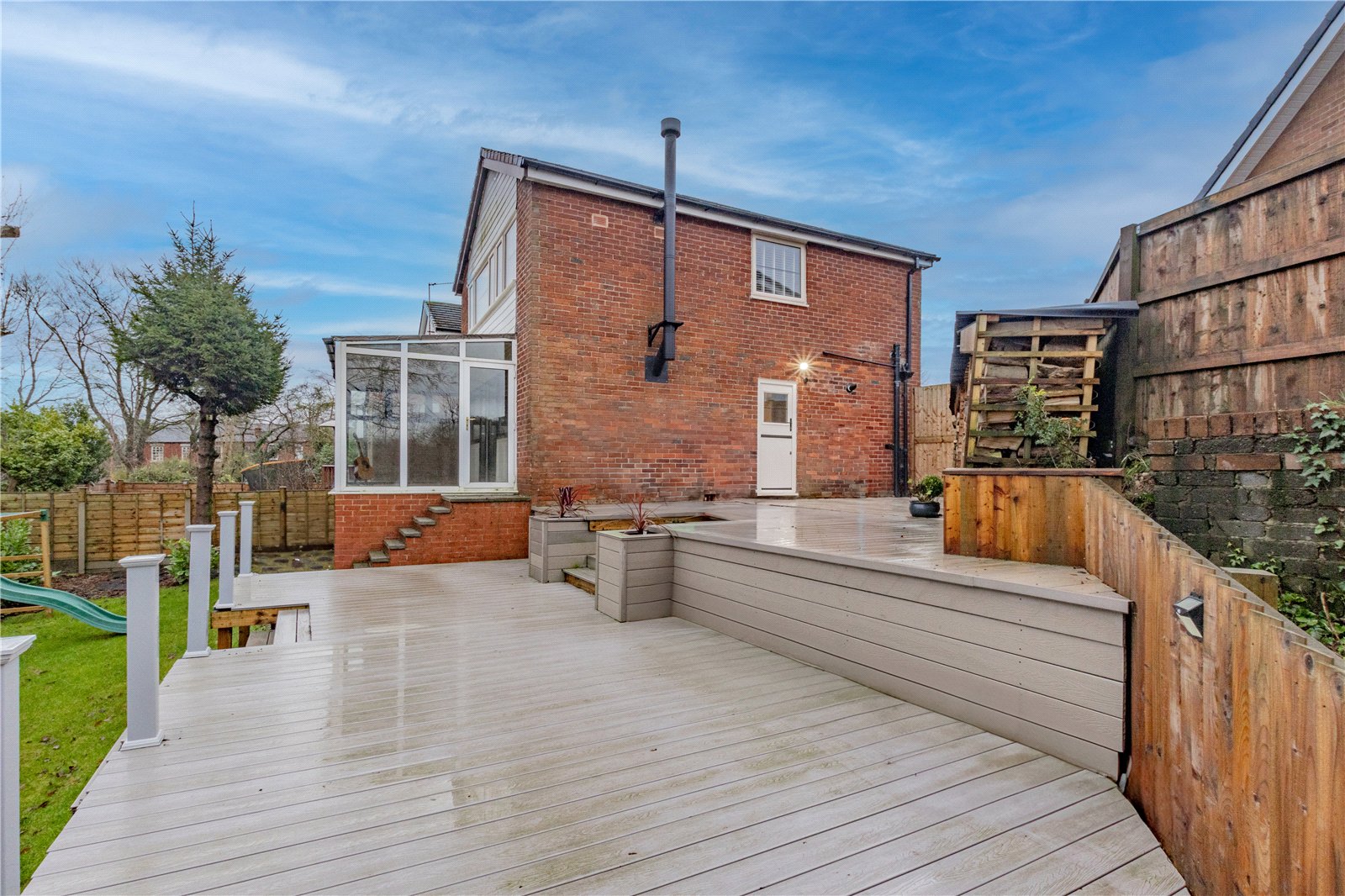 Externally the property stands on a GENEROUS CORNER PLOT and provides AMPLE OFF ROAD PARKING with RESIN DRIVEWAY for numerous vehicles leading to garage. To the rear reveals an ATTRACTIVE PRIVATE LAWNED GARDEN with COMPOSITE DECKED SEATING AREA, ideal for entertaining guests.
