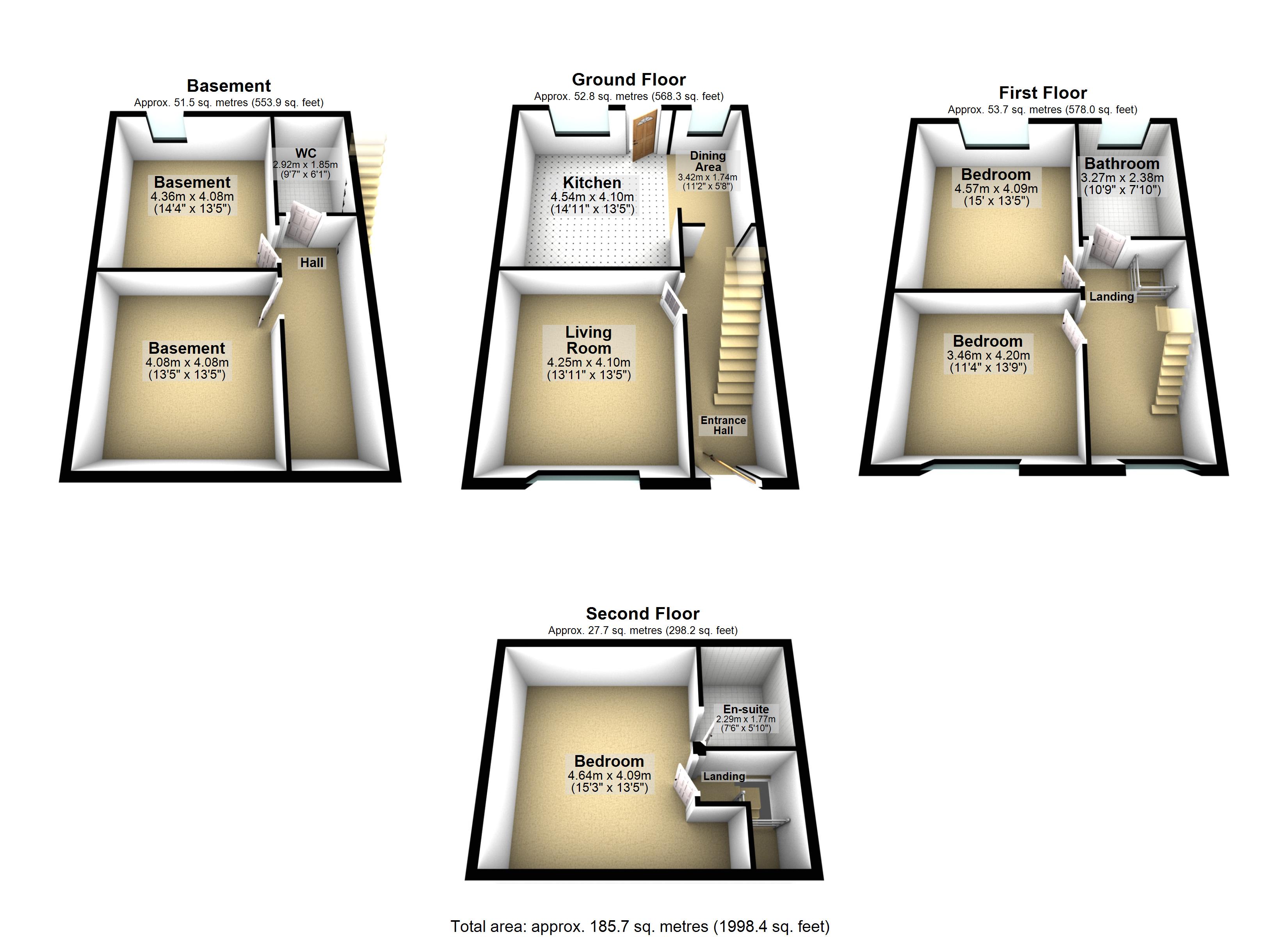 Internally the accommodation covers approximately just under 2000sqft of VERSATILE living space over FOUR LEVELS, comprising of entrance hallway, lounge, MODERN FITTED KITCHEN/DINER, TWO BASEMENT ROOMS, w.c, THREE DOUBLE BEDROOMS, en suite and a DELUXE FAMILY SHOWER ROOM.