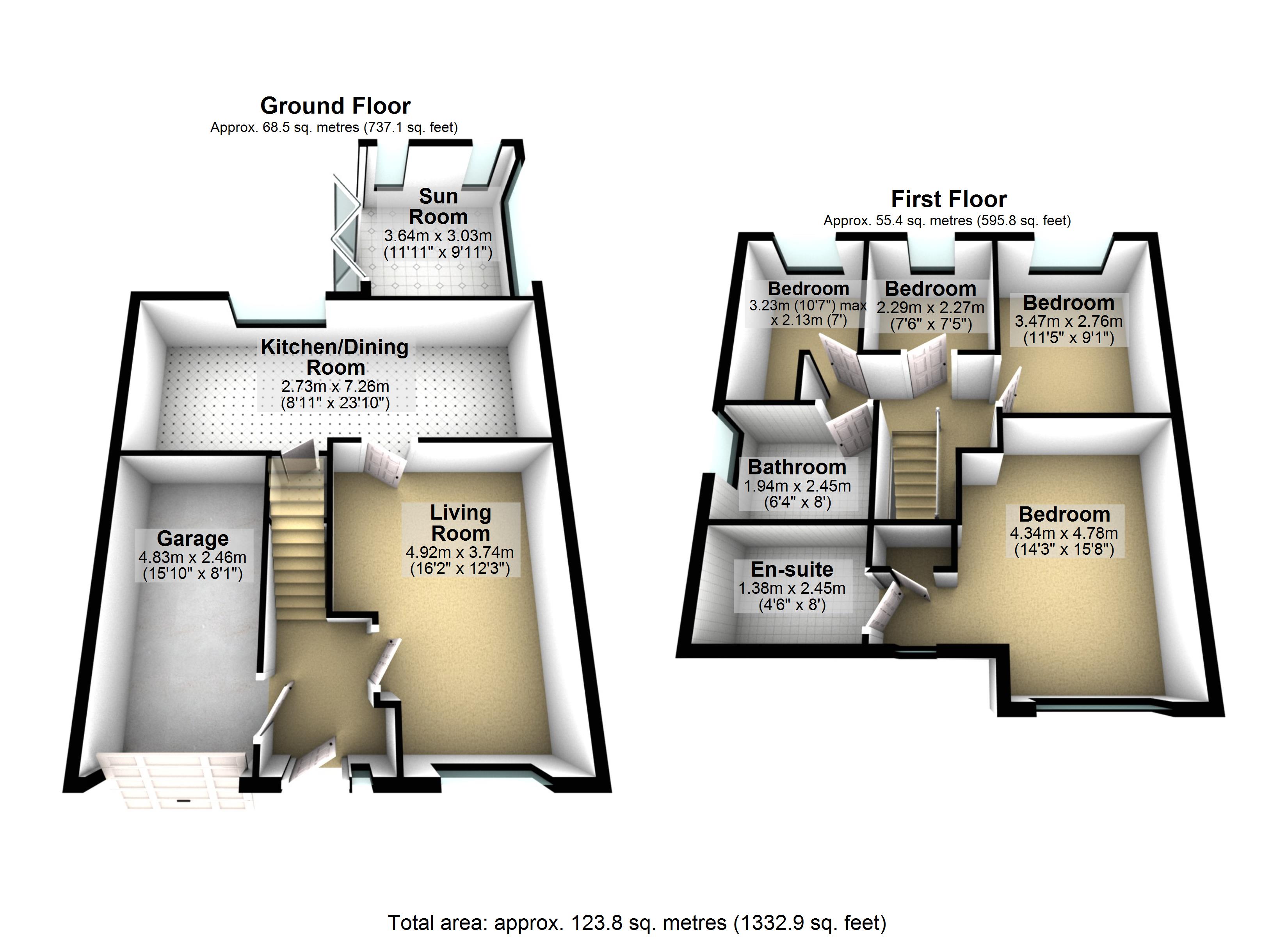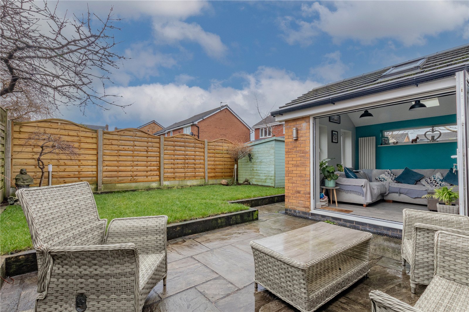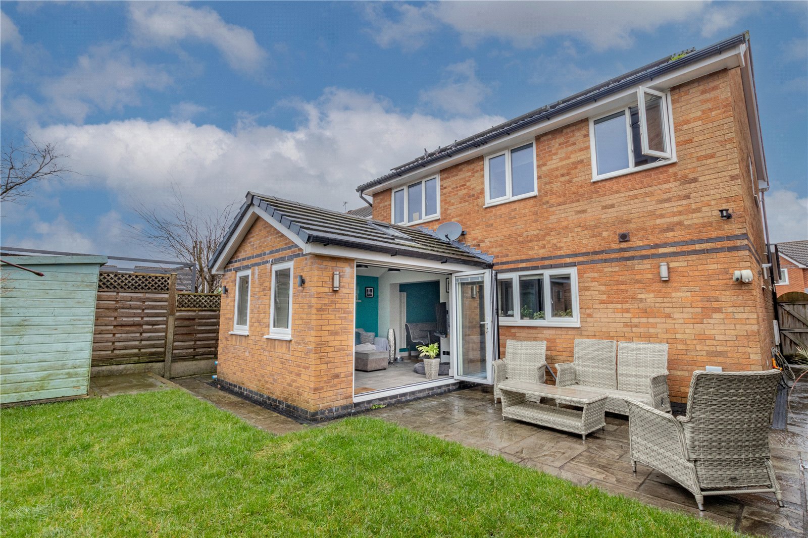 Internally the accommodation covers approximately just over 1330sqft of living space and boasts QUALITY FIXTURES AND FITTINGS installed throughout, comprising of entrance hallway, living room, MODERN OPEN PLAN KITCHEN/DINER, sun room with BI-FOLDS leading onto garden, MASTER EN SUITE, three further good sized bedrooms and a DELUXE FAMILY BATHROOM SUITE.