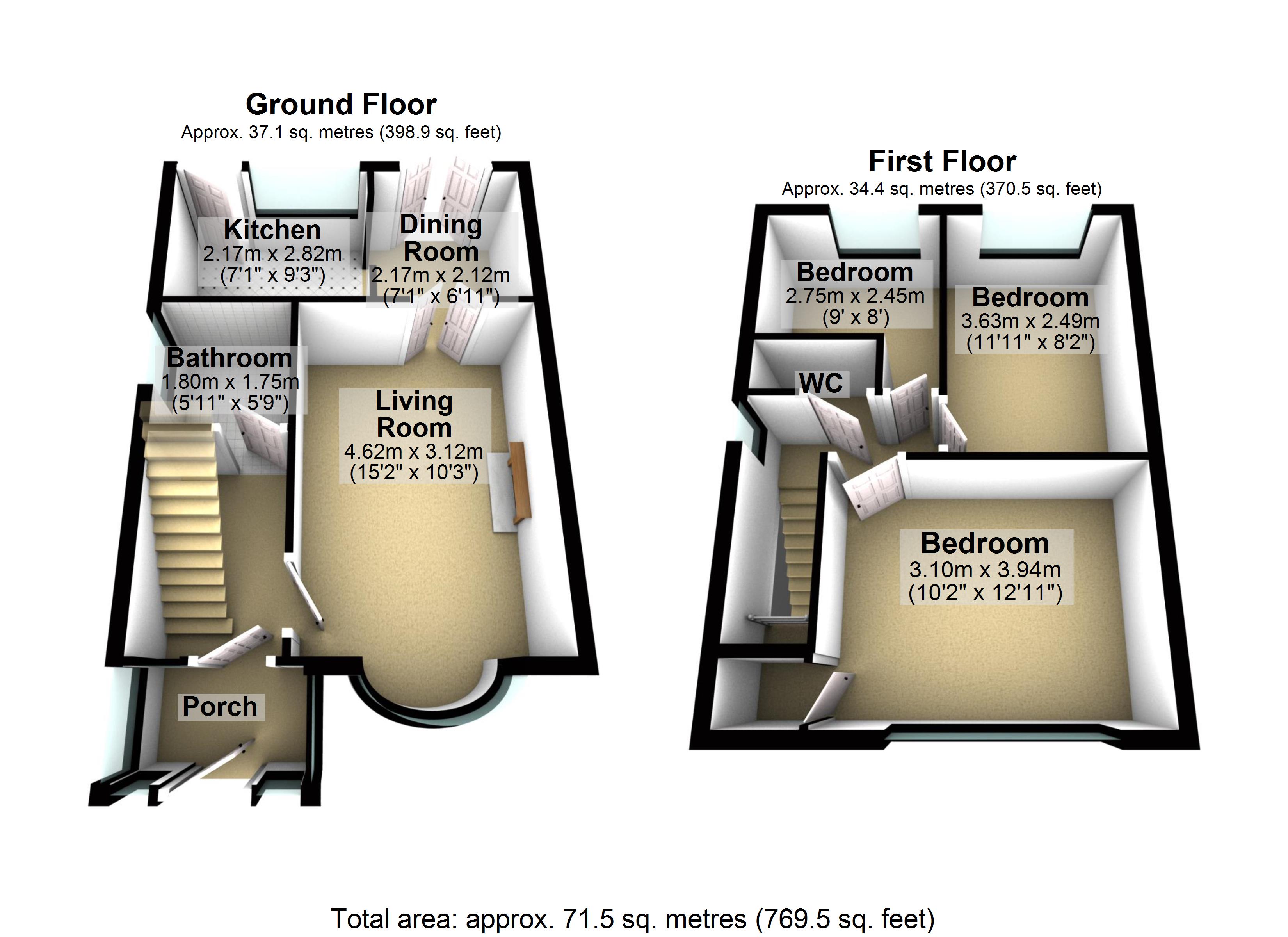 Internally the accommodation covers approximately just under 770sqft of living space, comprising of entrance porch, hallway, living room, dining room, MODERN FITTED KITCHEN, bathroom, THREE BEDROOMS and w.c.
